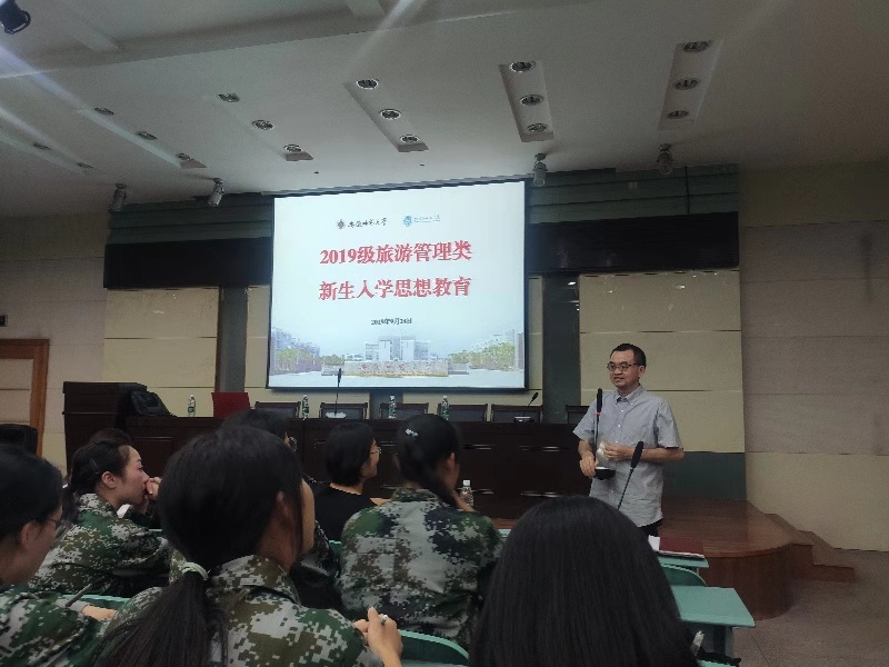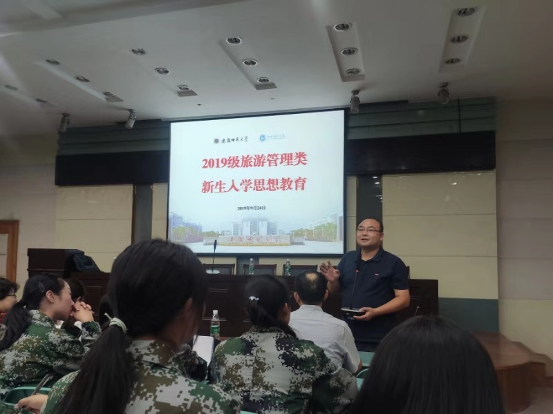 本网讯 (地旅学院凡语馨 梅雪意 徐倩)九州学子聚师大,师生携手砥砺行。为了促进广大2019级新生更好了解专业知识、一览名师风采,9月24日晚,beat365英国官方网站2019级旅游管理类专业新生入学思想教育在院实验楼101举行。酒店管理专业负责人尹寿兵副教授主持会议,旅游管理专业负责人杨效忠教授等专业课老师、辅导员徐倩及全体2019级旅游管理类专业新生参会。