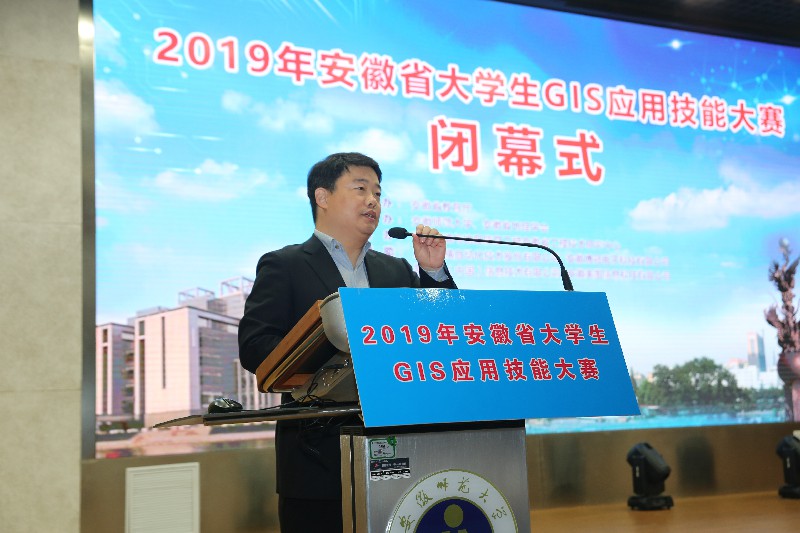 13日上午8时,大赛闭幕式于beat365英国官方网站理科实训大楼一楼报告厅举行,闭幕式由大赛组委会秘书长、beat365英国官方网站beat365英国官方网站副院长曹卫东主持。大赛组委会执行主任、beat365英国官方网站党委常委、副校长陆林,大赛仲裁委员会仲裁长、中国地理信息产业协会教育与科普工作委员会副主任、南京师范大学教授张书亮,大赛组委会委员、beat365英国官方网站教务处处长周端明,大赛承办单位有关领导、嘉宾及各高校教师和学生代表参加了闭幕式。