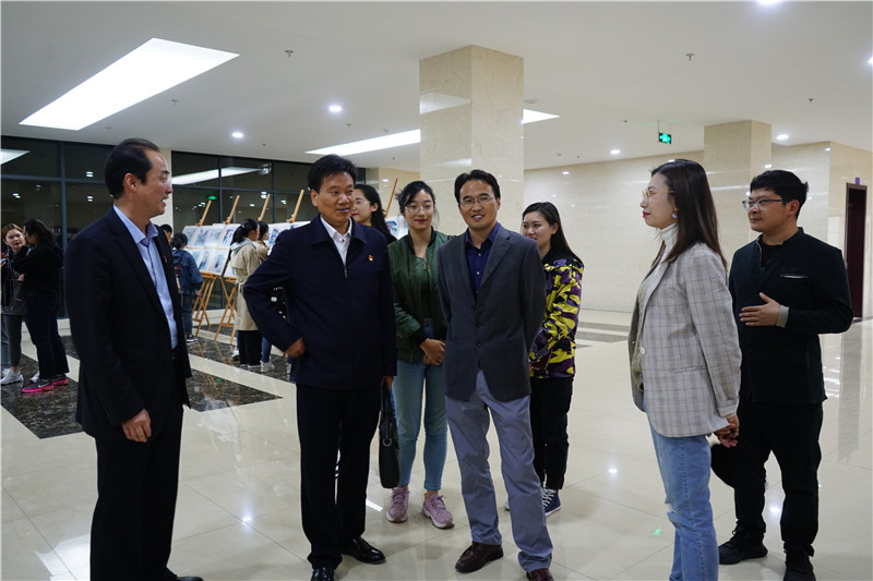 本网讯(地旅学院 王阳 潘爽 李丹)为展现地旅学院教学风采,分享城规专业学习成果,2019年10月31日晚,2018级城乡规划专业于理科大楼一楼大厅举办地旅学院“不忘初心 、牢记使命”主题教育活动暨城规专业课程思政“墨彩宏村”写生作品展写生作品展。校党委常委、副校长毕明福,省委主题教育第十巡回指导组成员、六安市政府办秘书四室主任张成伟,相关单位负责同志和专家,各学院学生工作负责人在院党委副书记乔静、城乡规划专业负责人杨兴柱以及多位专业任课老师、陈祥云的陪同下参观了画展。
