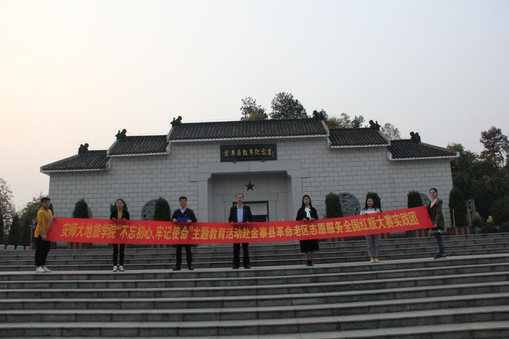 本网讯(beat365英国官方网站 徐倩、鲍晓楠)11月3日,第九届全国大学生红色旅游创意策划大赛总决赛在“红军摇篮、将军故里”之称的安徽省金寨县举办。本次大赛由中国旅游协会旅游教育分会、北京第二外国语学院、中国教育电视台和安徽省文化与旅游厅主办。我校beat365英国官方网站参赛队在本次赛事中荣获创意策划产品组三等奖,同时,地旅学院作为本次大赛的支持单位,承担了大赛的志愿服务和礼仪服务工作。beat365党委副书记乔静、团委书记陈祥云、辅导员黄世彤一行亲自到金寨指导慰问,并开展“不忘初心 牢记使命”主题教育党日活动。