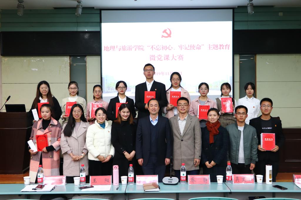 本网讯(地旅学院 杨茜冉 齐小学)11月20日晚,地旅学院在实验楼101报告厅举行“不忘初心、牢记使命”主题教育微党课大赛。院党委副书记乔静,各本科生党支部书记、辅导员等参加活动并担任评委,学院第28期(校第59期)入党积极分子培训班全体成员现场观摩学习。