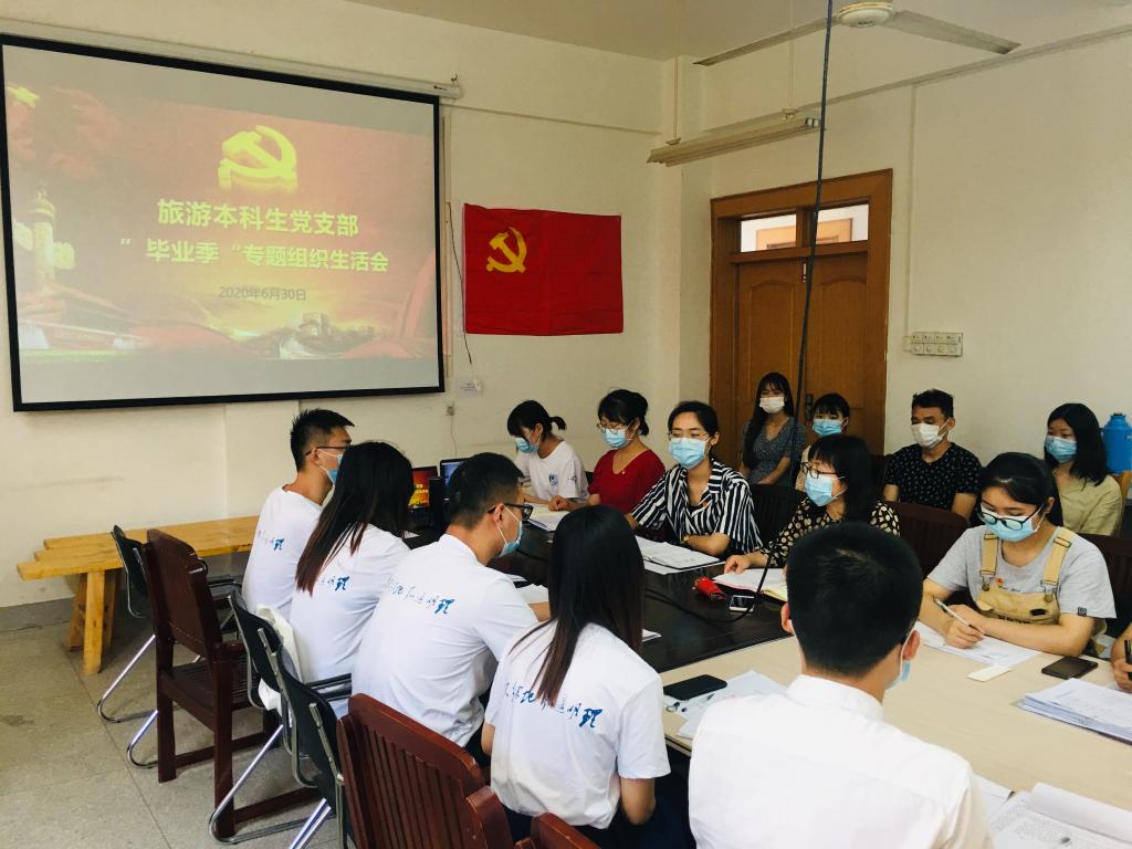 本网讯(地旅学院 齐小学)在中国共产党成立99周年、2020届毕业生离校之际,地旅学院各本科生党支部精心策划、认真组织专题组织生活会,学院领导参加会议,为毕业生党员上好大学“最后一课”,欢送毕业生党员奔赴祖国各地,奉献青春、建功立业。