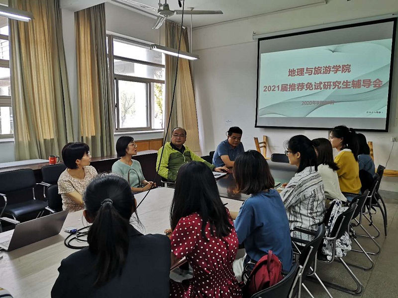 9月24日下午14点,beat365英国官方网站在行政楼1楼旅游教研室举行2017级旅游管理、2017级酒店管理本科生推免保研指导会,特邀学院杨钊、王群、尹寿兵、王咏老师与2017级获得推免资格的旅游、酒店本科生进行面对面交流,2017级本科生辅导员王美及10余名同学参与了指导会。