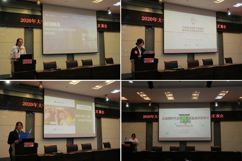 其中,“访徽韵·探民宿”GIS民俗信息系统构建与调研团队通过GIS探索民俗发展道路,形成丰富调研成果;“基于大数据的城市内部情感旅游流时空模式”调研团队构建情感旅游流网络,分析游客旅游规律;“新冠肺炎疫情网络舆论大数据与时空分布”云调研团队基于互联网大数据领域,对舆情热度生命周期进行多方面多角度分析并给出建议;“旅游扶贫对国家级自然保护区土地利用变化影响——以鹞落坪自然保护区为例”调研团队赴鹞落坪进行考察,认为农村扶贫发展要做到传统与变革齐头并进,生态和经济合二为一,为乡村振兴和美丽中国建设建言献策;文旅融合视角下的城市地摊经济空间创意研究调研团队多种方法结合,挖掘城市地摊创造力,发展地摊文化,开辟新型销售渠道,带领人民脱贫致富;beat365英国官方网站“情系川皖·圆梦巴蜀”山区留守儿童线上支教团队不忘初心,步履不停,连续13年传递爱的火炬,受疫情影响“云端”开展支教活动,特别增设防疫知识宣讲、安全知识宣讲,为孩子普及疫情防控牺牲烈士英勇事迹,培养孩子们的爱国意识;农业转移人口市民化调研团队从乡村、城市两部分开展调研,从人民群众视角看待问题,比较相关性分析并得出结论;安徽省后疫情时代农民工就业流动决策研究实践团队分析新冠肺炎疫情影响下的农民工就业的不确定性问题并得出心得感悟。街道防疫、抗洪筑堤、情系川皖、寻觅徽韵、探鹞落坪……每支队伍都各具特色,调研成果颇丰。