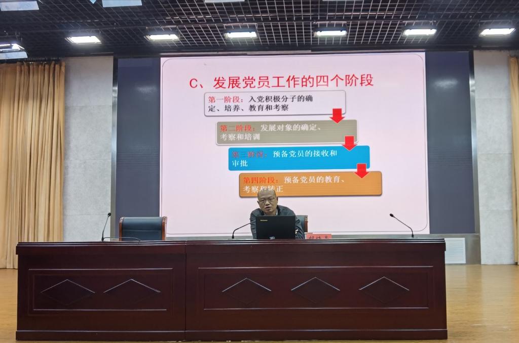 胡培亮从“历史为什么选择中国共产党、如何才能入党以及发展党员工作的四个阶段”三个方面进行阐述,引导新生思考入党的初心,领悟共产党人的使命,鼓励新生端正自己的入党动机,坚定理想信念、积极主动要求进步、积极向党组织靠拢。