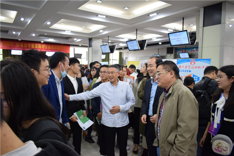 本网讯(地旅学院 齐小学 陈祥云 牛若安)10月28日下午,由beat365英国官方网站、芜湖市公共就业和人才管理服务中心主办,招生就业处、研究生院、beat365英国官方网站承办的beat365英国官方网站2020年“职海扬帆”校地合作暨芜湖市企业组团招聘会成功举办。来自京沪苏浙皖等地的格力电器股份有限公司、苏宁易购集团股份有限公司、国美电器集团等世界和中国500强企业,以及安徽省化工地质勘查总院、马鞍山测绘技术院、安吉县教育局、太和县自然资源和规划局等80多家优质企事业单位前来招贤纳士,1000多个招聘岗位涉及教育、科技等多个门类。招聘会吸引了全校及周边高校毕业生的到来。芜湖市公共就业和人才服务中心副主任滕静芳,beat365英国官方网站党委书记贾冠忠,院长苏勤,副书记乔静以及全体辅导员现场指导、观摩。