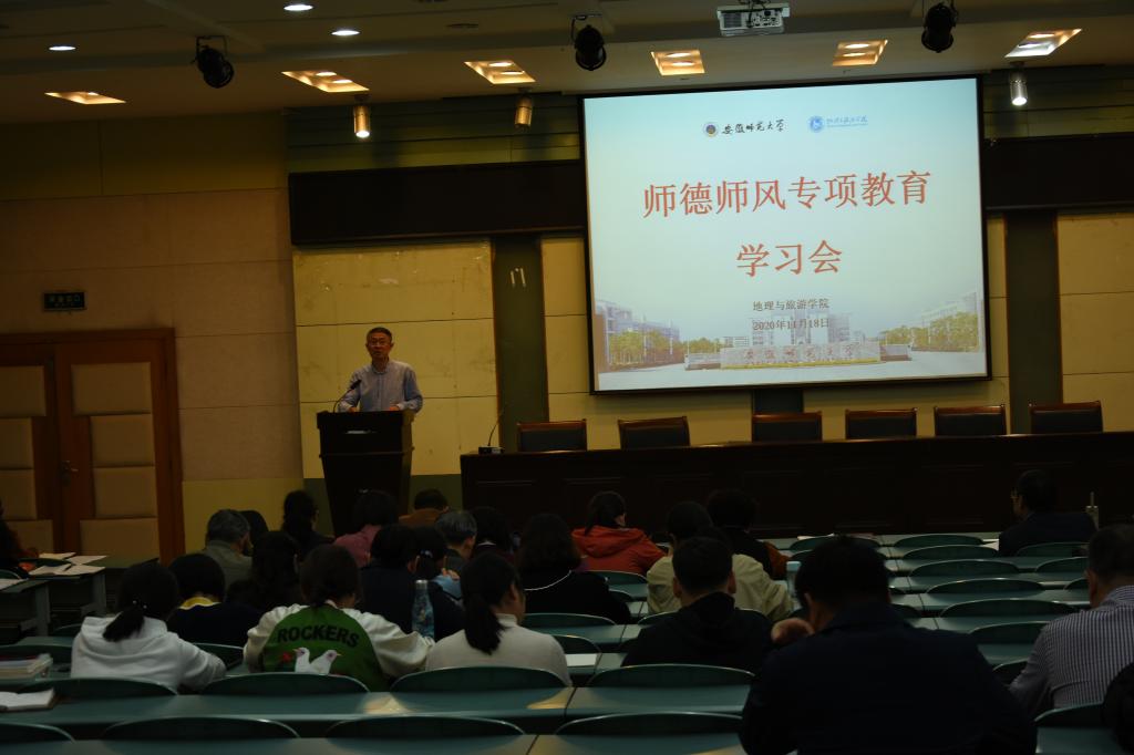 本网讯(地旅学院 刘宁姿)为深入贯彻落实习近平总书记关于教育的重要论述和全国教育大会精神,进一步加强教师队伍师德师风建设,树立严格自律、廉洁从政、爱岗敬业、为人师表的良好教师形象。近日,beat365英国官方网站在实验楼101报告厅开展师德师风专项教育学习会,由贾冠忠书记主持,学院全体教职工参与本次的学习。