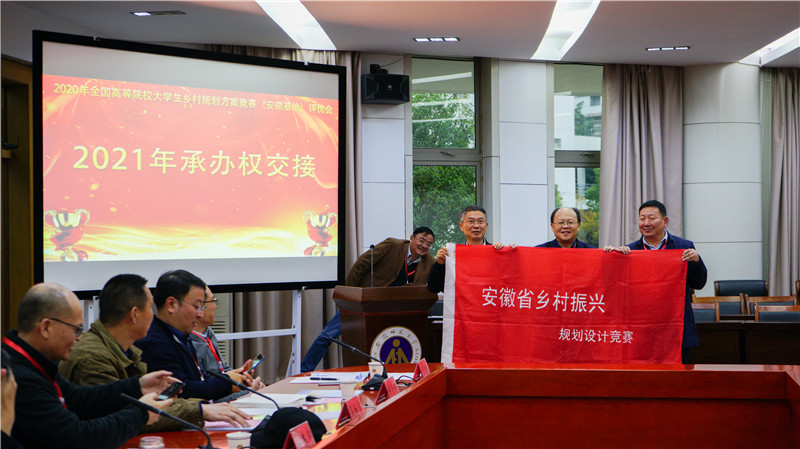 最后,本届大赛承办单位代表beat365英国官方网站beat365英国官方网站党委书记贾冠忠、安徽省高等学校土木建筑类专业合作委员会秘书长储金龙教授和2021年度大赛承办单位代表安徽科技学院建筑学院院长张远兵教授共同举行交接仪式。评优会结束后还举行了安徽省高等学校城乡规划专业教学研讨会,来自省内高校城乡规划专业负责人就专业人才培养、一流专业建设等议题进行了交流研讨。