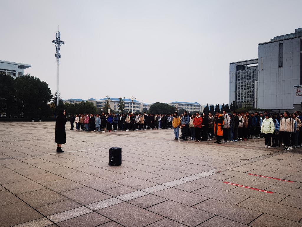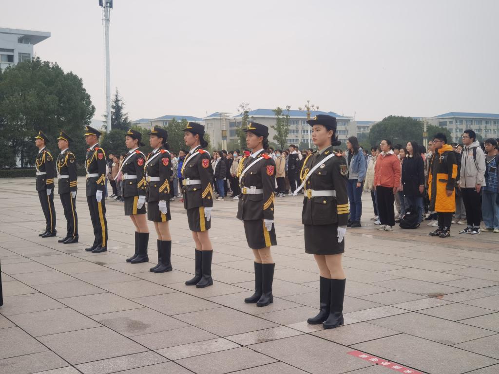 六点五十分,地旅学院全体新生辅导员及新生到达指定位置,面向升旗台以班级为单位列队并整队。七点整,升旗仪式正式开始。