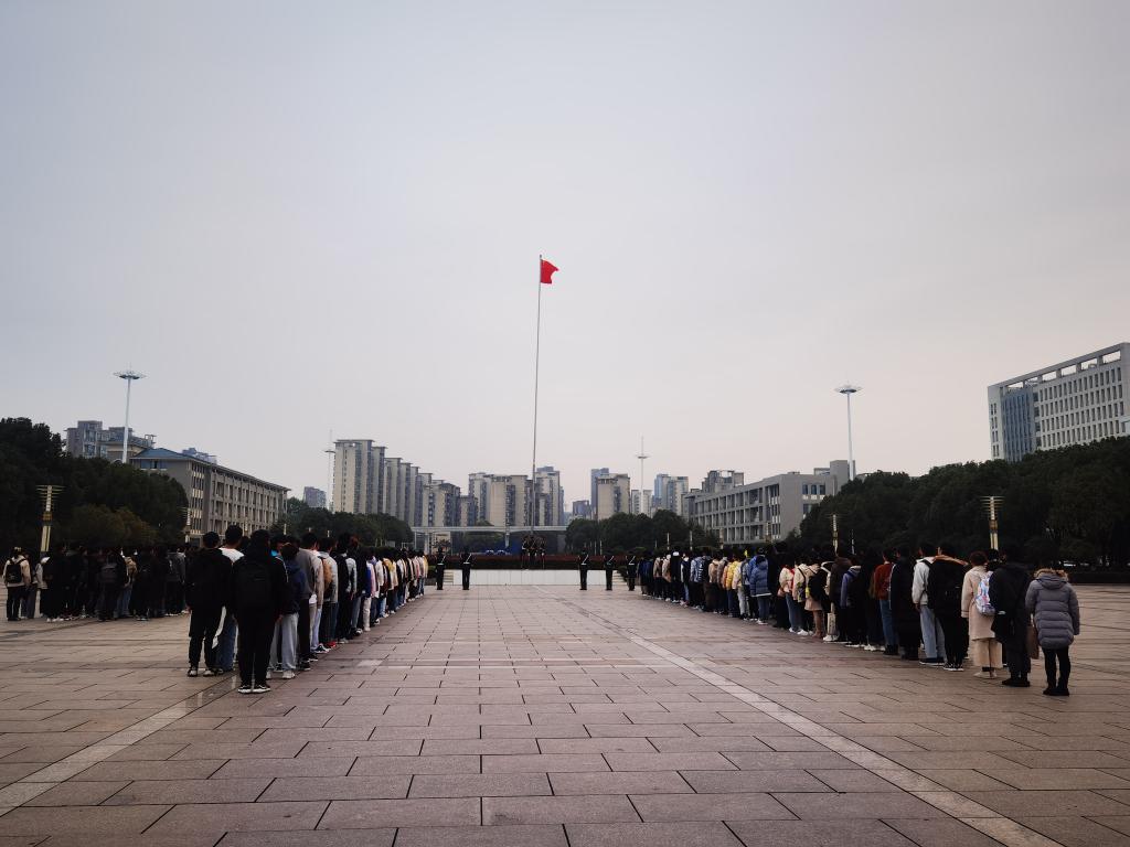 本网讯(地旅学院 汪琦 彭媛媛)为进一步加强大学生的爱国主义教育,引导学生自觉践行社会主义核心价值观,培养学生的国家意识和家国情怀,根据《中华人民共和国国防教育法》、《中华人民共和国国旗法》、《中华人民共和国国歌法》,2020年11月23日早晨7:00,在学校相关部门的统筹领导下,beat365英国官方网站于花津校区敬文图书馆东侧广场举行校园升国旗活动。国旗护卫队升旗,2020级新生辅导员及全体新生参加活动,活动由赵佳慧主持。