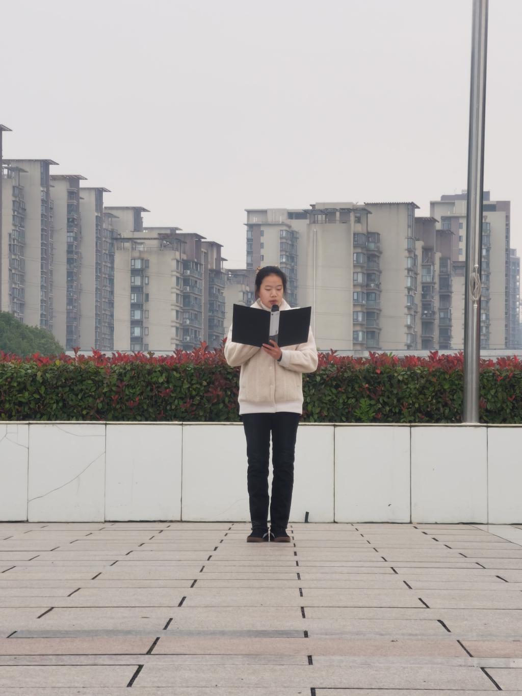 议程第二项:地理科学类二班答采薇同学做国旗下讲话。答采薇同学以《树立远大理想,勇于砥砺奋斗》为题,和同学们分享要如何将自己打造成有山的稳重、水的灵秀的地旅专业人才,她强调首先要学会时间管理,充分利用时间;其次要脚踏实地,持之以恒地践行;最后要学会自律,养成良好的习惯,从而成为一名“经天 纬地 弘道 明理”的地旅人,“厚德 重教 博学 笃行”的师大人。