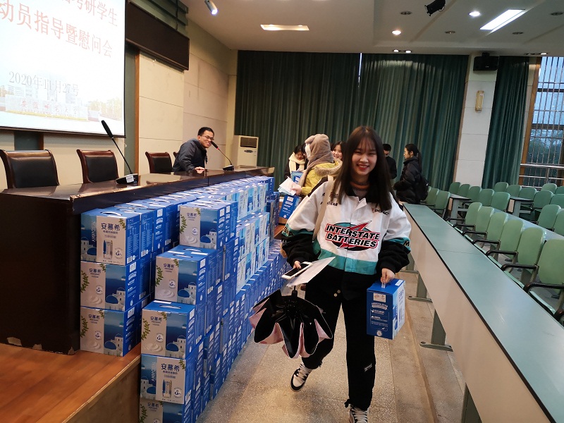 随后,学院领导为同学们发放了考试文具、牛奶等慰问物品。同学们纷纷表示带着这份饱含谆谆教诲和殷切期盼的“加油包”,一定会坚持不懈,再接再厉,为自己拼一个好未来,为学院添一份光彩。