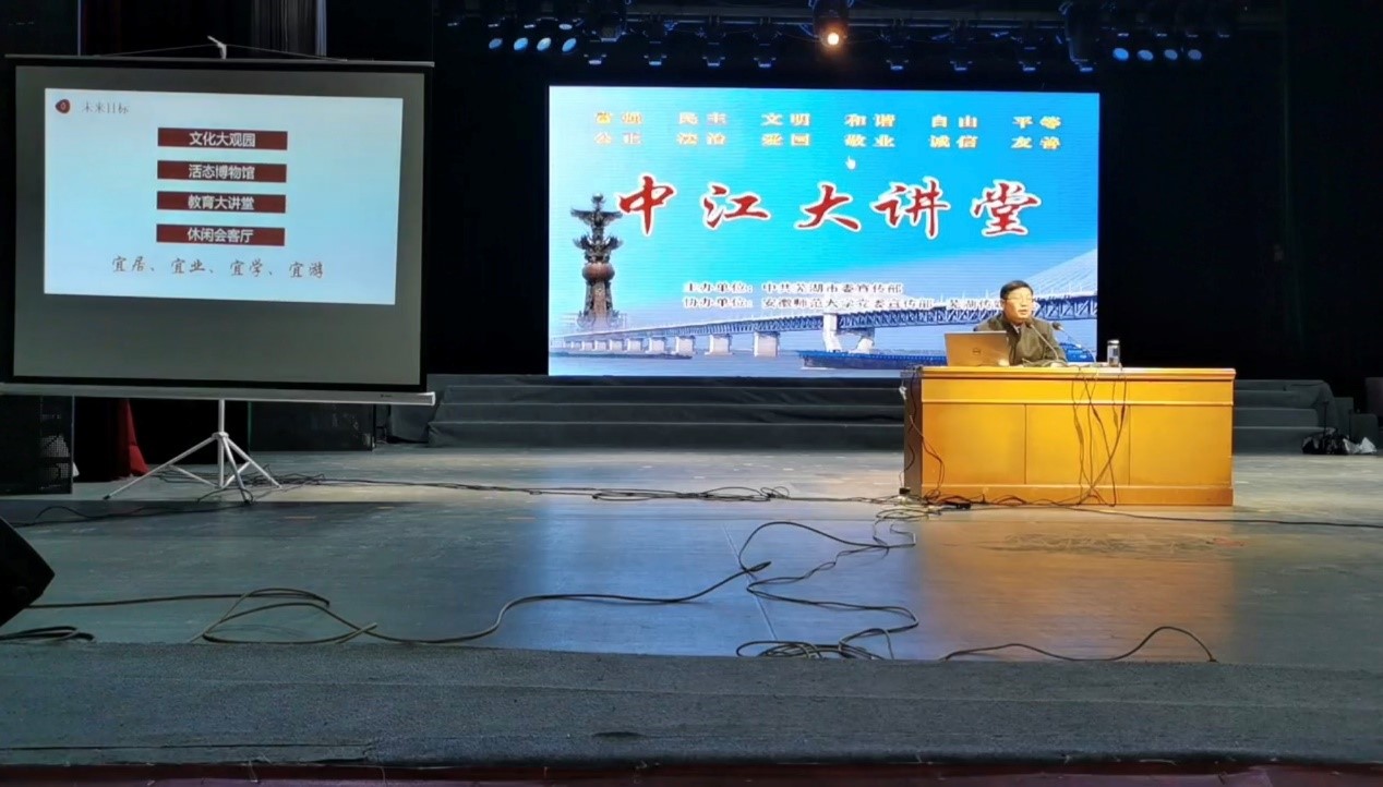本网讯(beat365英国官方网站)12月29日下午,我校beat365英国官方网站教授、博士生导师杨效忠,应邀参加由芜湖市委宣传部主办、beat365英国官方网站党委宣传部和芜湖传媒中心协办的“中江大讲堂”在芜湖市百花剧场开讲,讲座主题为“芜湖古城的昨天、今天和明天”。当天,芜湖新闻网和今日芜湖APP均进行了全程视频直播,现场直播参与人数超过1.6万人。