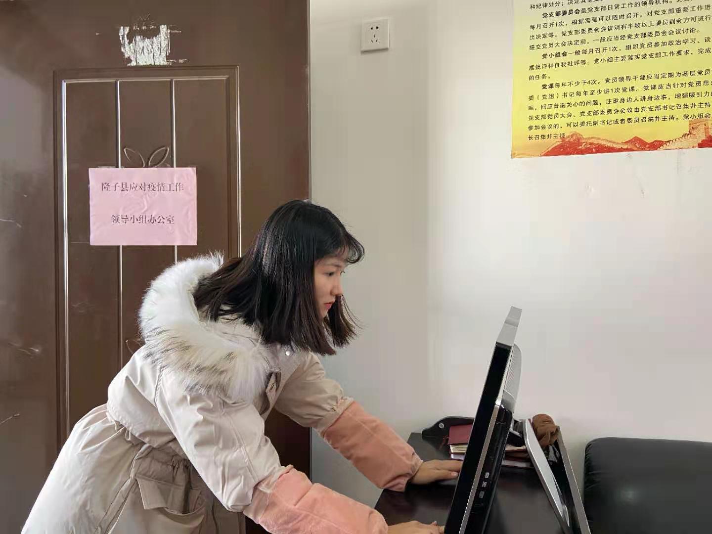 近日,适逢春节假期即至,张丽君响应号召选择留在工作地不回家乡过年,为让自己在西藏的第一个春节过的更有意义,她主动申请参加西藏隆子县疫情指挥部的疫情防控工作,参与到当地节日期间的疫情防控工作当中。每天的工作繁杂且重要,张丽君更加懂得了求真务实、自律慎独的重要性,不仅积极提高各项工作能力,还努力培养为民服务的耐心、细心、责任心,所做工作得到了同事和群众的肯定。