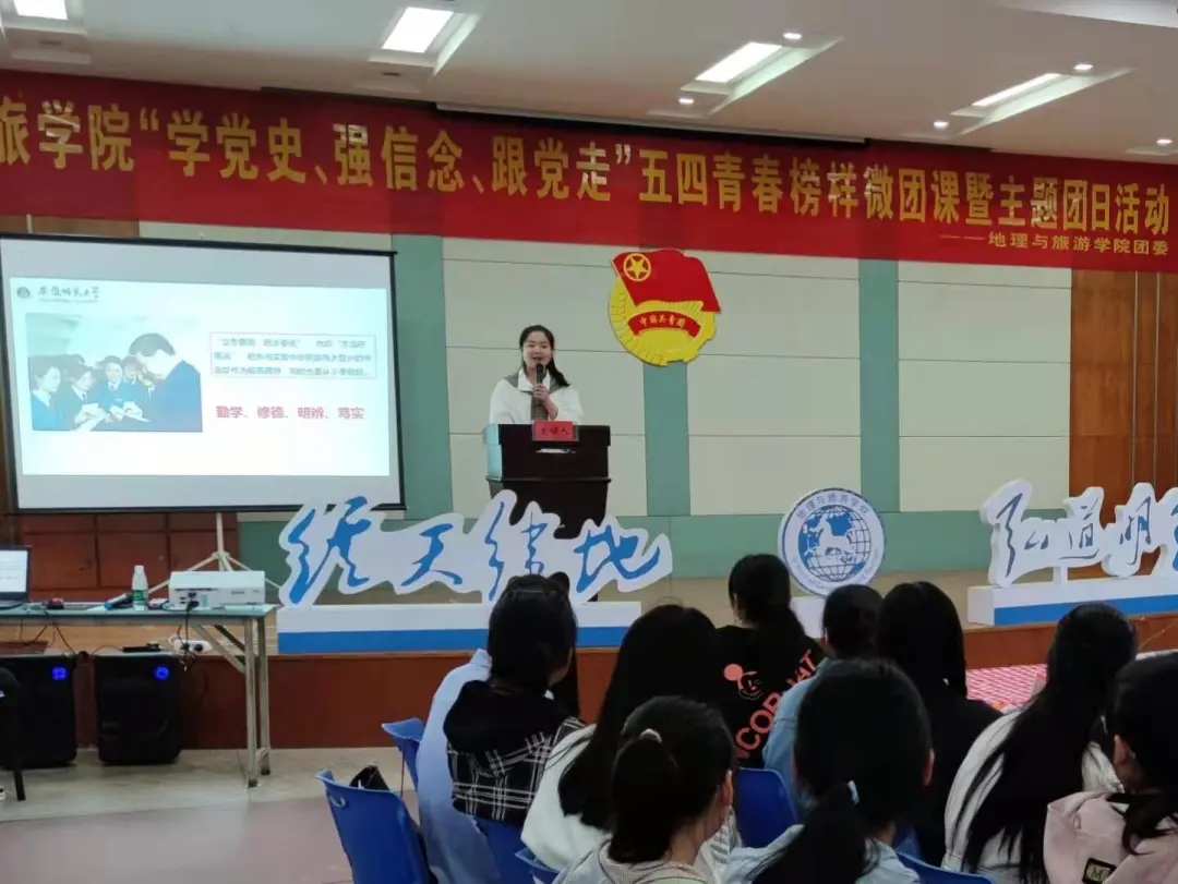 本网讯(地旅学院 徐菁、洪茹芊)为深入开展党史学习教育,庆祝五四青年节,2021年5月4日,beat365英国官方网站线上线下开展“学党史、强信念、跟党走”五四青年节主题团日系列活动。线下举办“学党史、强信念、跟党走”五四青春榜样微团课暨主题团日活动,线上组织全院党团青年收看“学党史 强信念 跟党走”主题云团课,并分享学习心得。