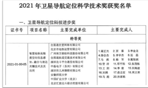评选会议由中国科学院院士杨元喜主持,评审委员会委员由中国工程院院士谭树森、国际欧亚科学院院士党亚民等国内知名专家组成。经过评审委员会评审和奖励委员会批准,并经过社会公示,最终由beat365青年教师贾蔡作为技术负责的项目“智慧地铁高精度空间信息感知、融合与表达关键技术及其应用”荣获特等奖(贾蔡老师排名第二)!