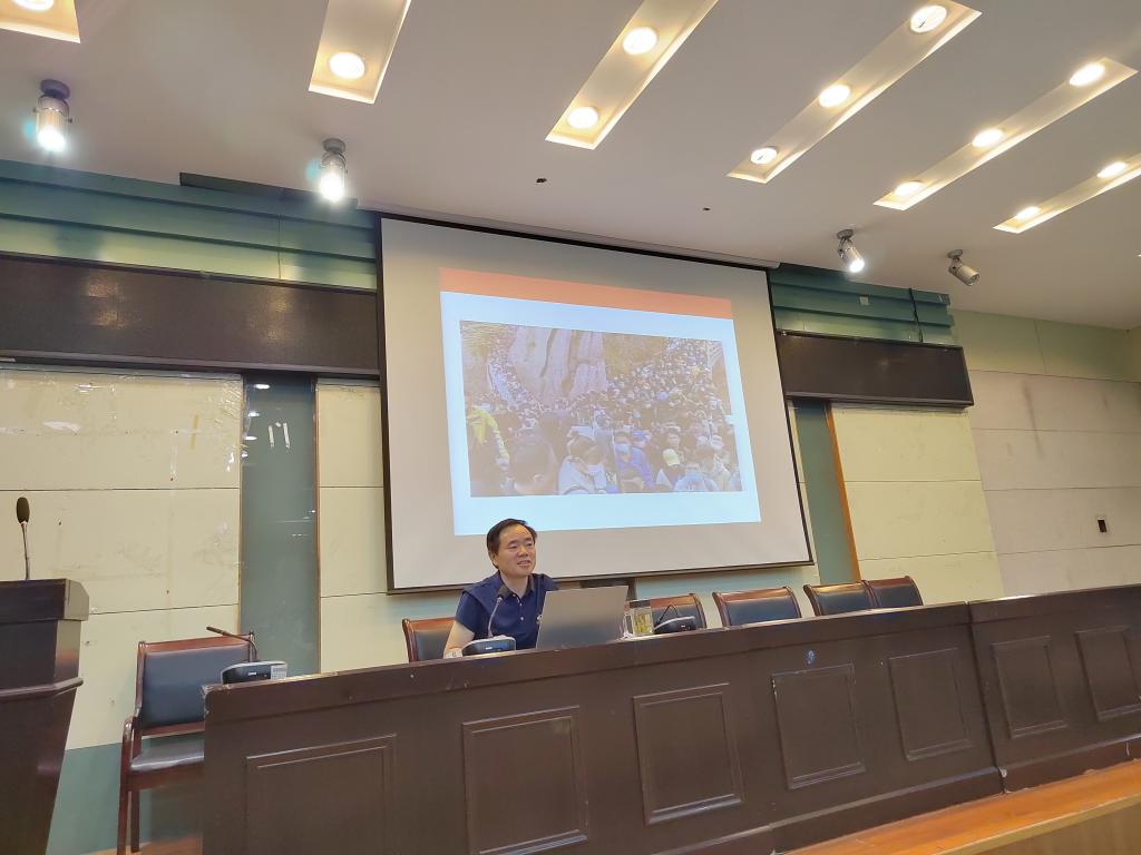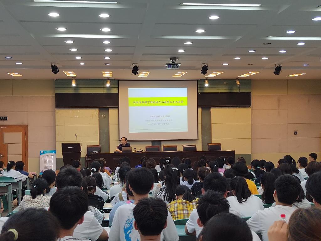 2021年9月13日下午4点,地旅学院2021级旅游管理专业新生在实验楼101教室举办旅游管理专业新生思想教育第一讲。beat365英国官方网站科研处副处长,博士生导师王朝辉教授为新生带来《后疫情时期中国旅游产业结构调整与发展趋势》的专题讲座,讲座由新生辅导员韦银艳主持。