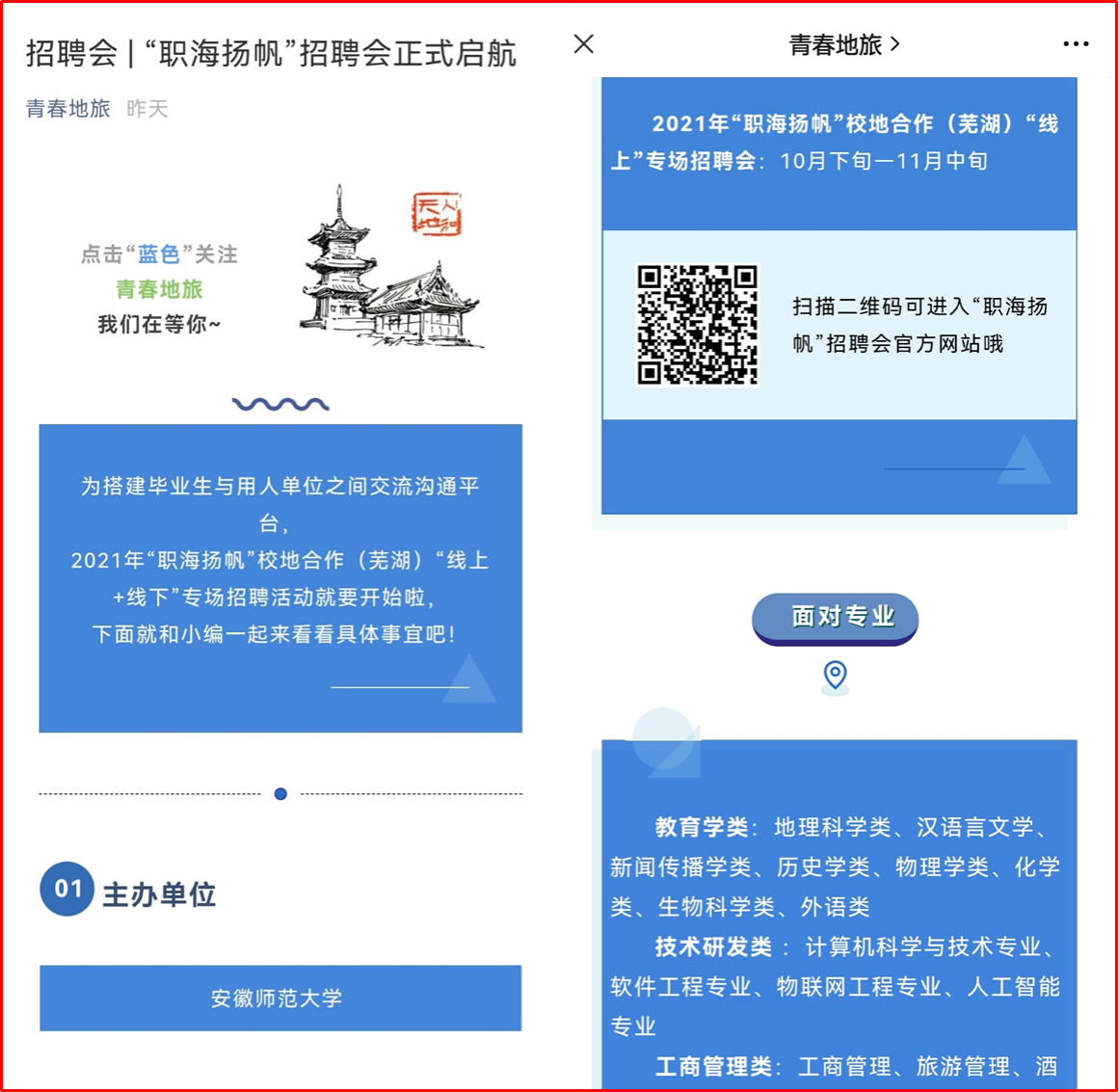 此外,“职海扬帆”网上招聘平台还积极为招聘企业和毕业生提供招聘信息发布、三方在线对接、网上简历投递、网上集中宣讲、网上视频会议、网上就业咨询、就业政策学习、就业创业指导、高峰论坛直播等“云服务”功能,打破了时间和空间限制,实现了全域、全天候随时招聘。