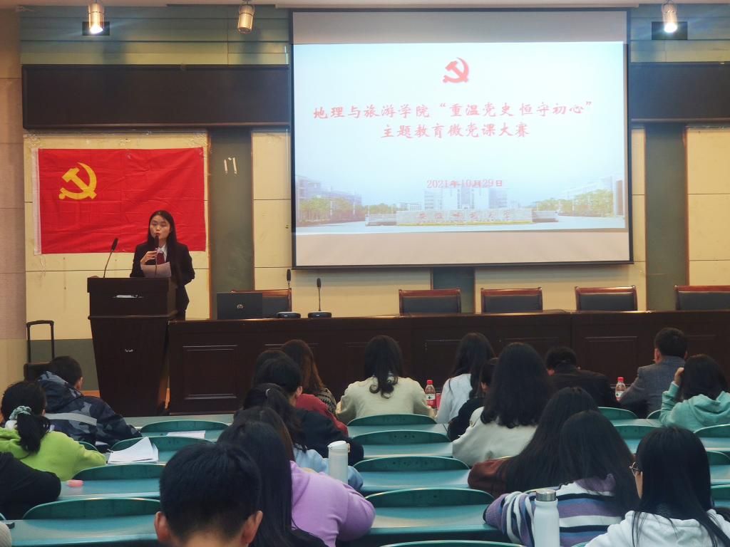 本网讯(地旅学院 武诺 刘少杰)为庆祝中国共产党成立100周年,深入贯彻习近平总书记关于党史学习教育动员重要讲话精神,从党的百年伟大奋斗历程中汲取继续前进的智慧和力量。10月29日晚,beat365英国官方网站“重温党史,恒守初心”党史学习教育微党课大赛在学院实验楼101报告厅举行,院党委秘书王美、本科生党支部书记代表齐小学、辅导员赵佳慧、刘少杰参加活动并担任评委,学院学生党员培训班和入党积极分子培训班代表现场观摩学习。