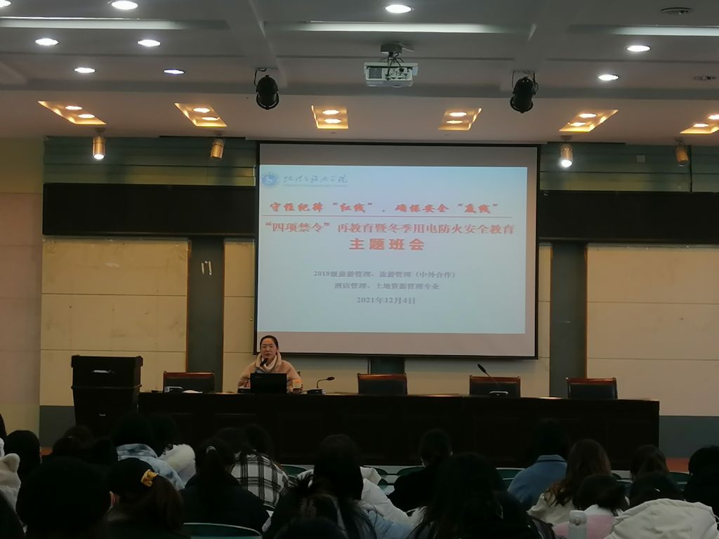 12月3日上午,地旅学院于学院行政楼四楼会议室召开学生冬季安全暨防火用电工作专题会议,院党委副书记乔静、全体专兼职辅导员参加会议。