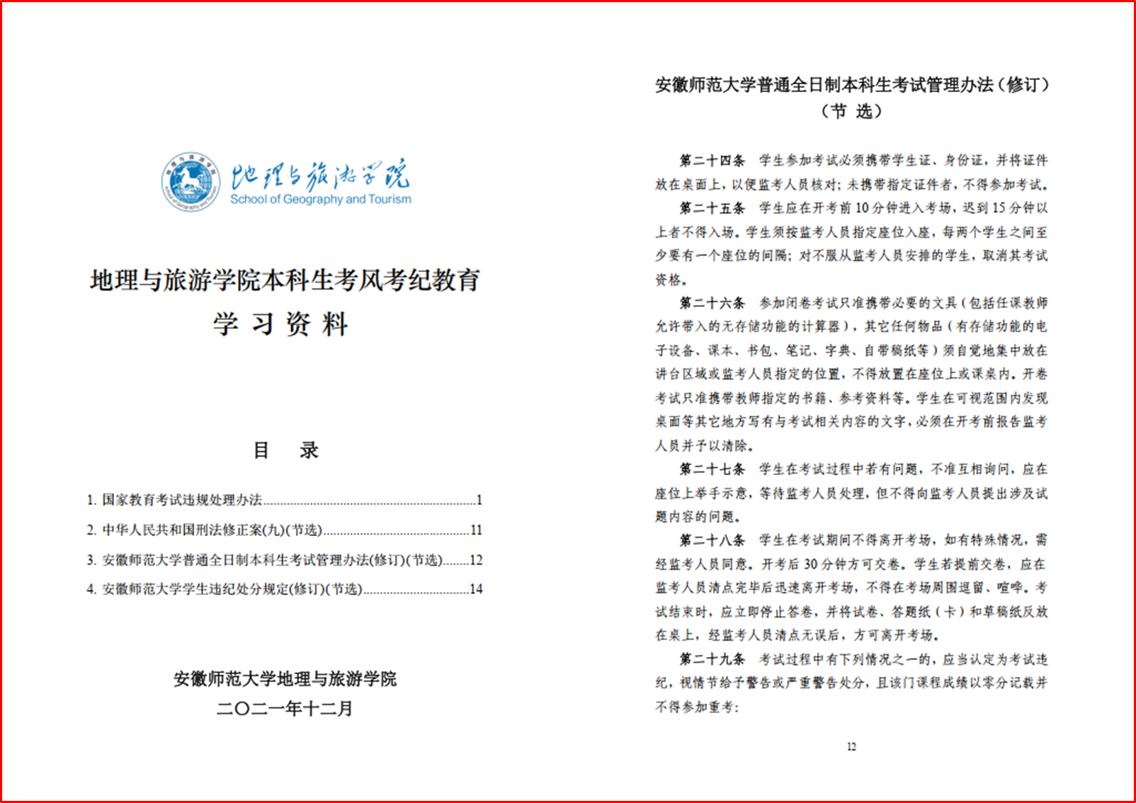 据悉,地旅学院始终高度重视学生考风考纪教育,严格执行学校学院考风考纪相关规定,不断强化学生考风考纪教育,提升学生诚信考试意识、规范考场考试行为、严惩违规做法,以创新形式全面推进学生考风考纪教育,学风考风建设取得了扎扎实实的成效。