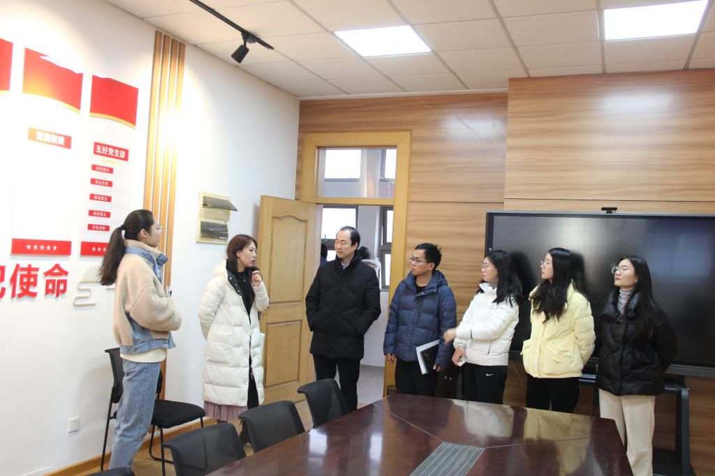 为做好党建“双创”样板支部验收工作,加强党建工作交流,1月17日,地旅学院党委副书记乔静带领全体本科生党支部书记前往新传学院开展实地交流学习,教育部第二批全国党建工作样板支部建设单位——我校新传学院新闻与播音主持专业教工党支部书记张荻副教授全程陪同。