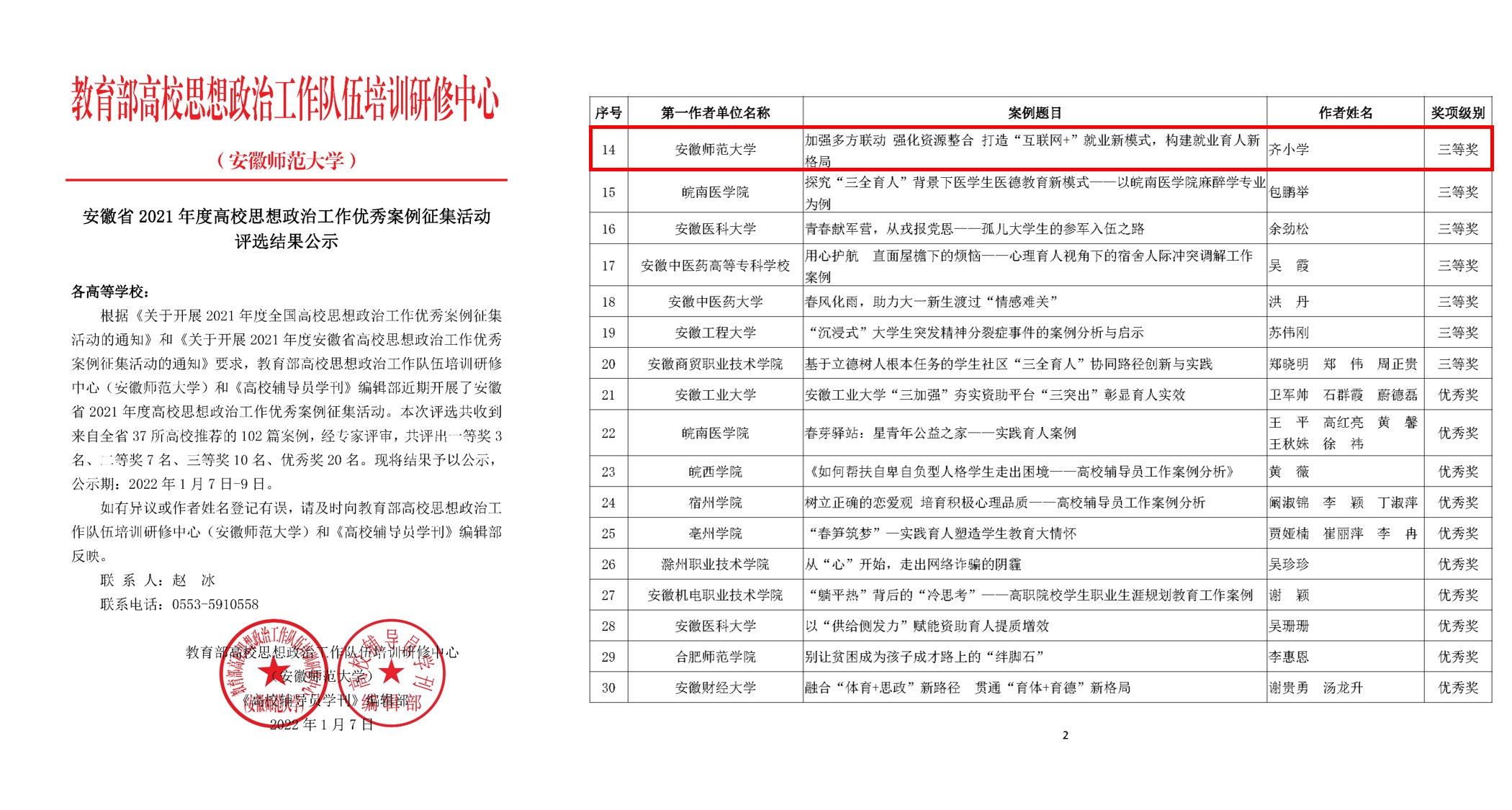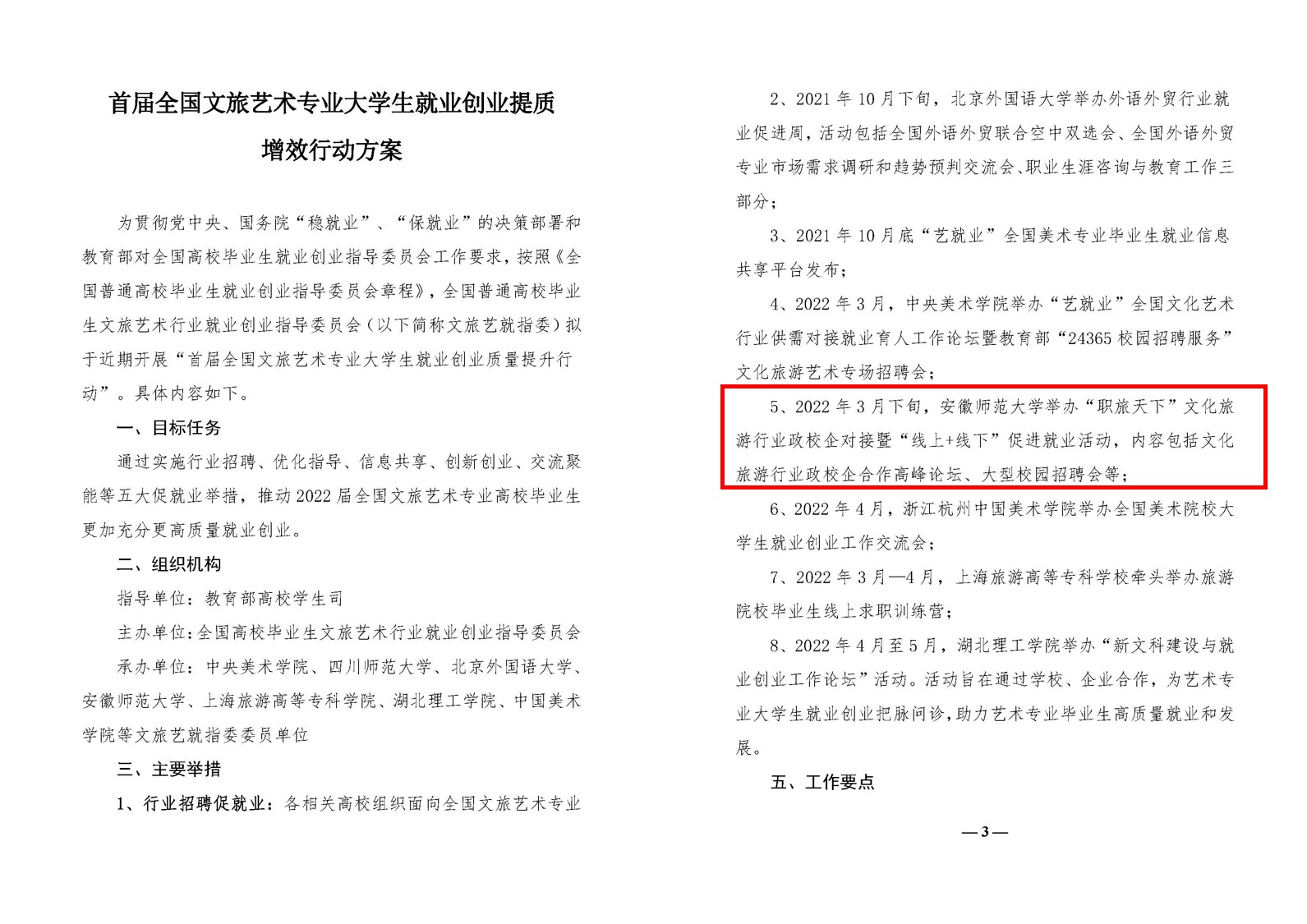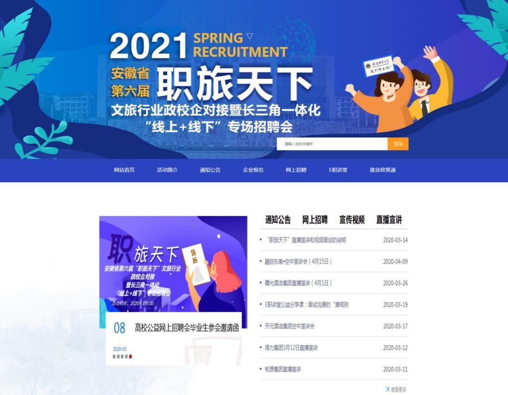 beat365英国官方网站打造的就业品牌——“职旅天下”安徽省旅游行业政校企在线对接活动暨高校公益网上招聘已成功入选教育部高校学生司指导、全国高校毕业生文旅艺术行业就业创业指导委员会主办的首届全国文旅艺术专业大学生就业创业提升行动(全国仅8个),并荣获安徽省2021年度高校思想政治工作优秀案例,服务了学校毕业生就业工作,发挥了就业育人的重要作用。