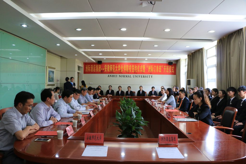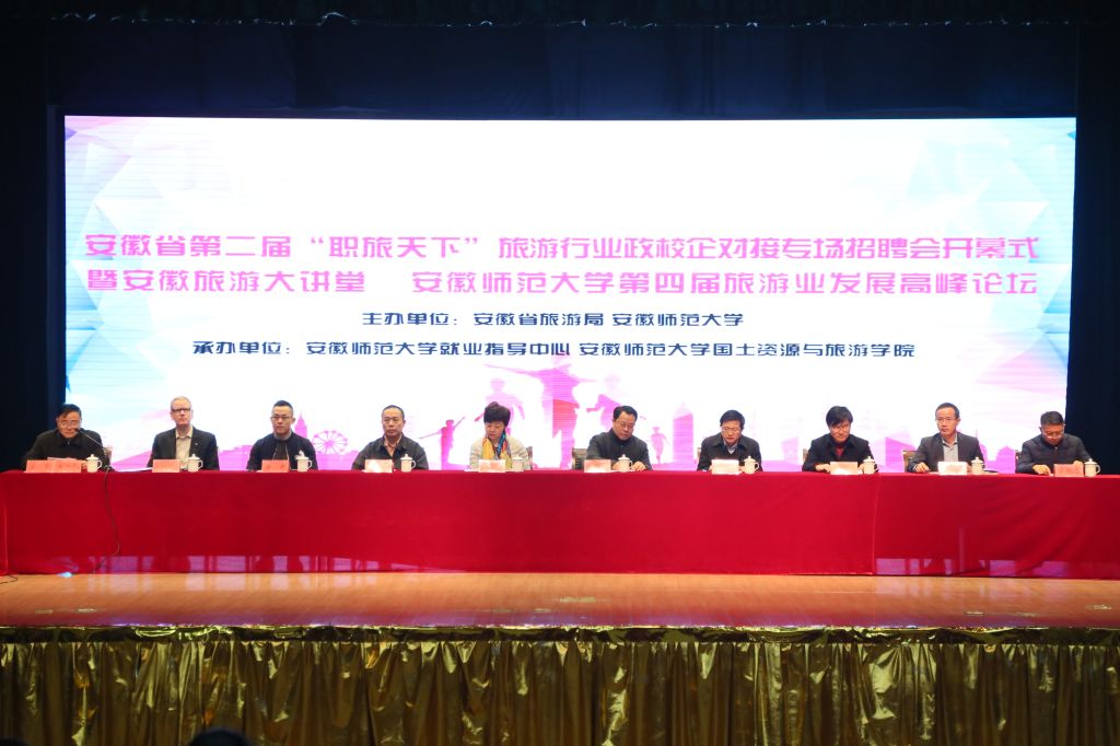 发挥学科专业优势搭建政校企合作平台,主动对接安徽省文化和旅游厅、芜湖市公共就业和人才管理服务中心等单位,合作主办“职旅天下”安徽省旅游行业政校企对接大型专场招聘会、“职海扬帆”校地合作暨芜湖市企业组团招聘会等“专业+专场”招聘活动。“职旅天下”系列活动自2013年创办、2016年升级为省级就业平台以来,已吸引700余家文化、旅游及相关行业知名企业,省内外各高校2.9万人次毕业生参与,促进了安徽省旅游院校与政府、企业的交流融合,校地合作、校企合作、“洲际”英才学院、“开元”订单班等一批政校企合作项目开花结果,一批创新创业项目和教学成果奖项应运而生;除就业招聘外,该项活动每年还举办政校企合作高峰论坛、圆桌论坛、院长论坛、行业研讨会等活动,创新搭建“政府领导、学界专家、行业精英、高校学生”四位一体互联互通交流服务平台,通过8年的精心培育,“职旅天下”已成为安徽省乃至长三角地区“起步最早、规模最大、影响最广”的高校旅游行业政校企合作重要平台之一,原国家旅游局官网、中国旅游报、安徽日报等媒体广泛报道了活动盛况。