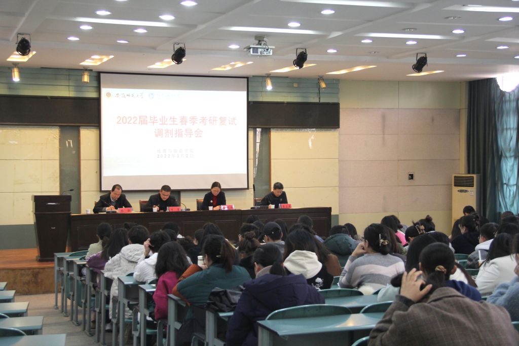 3月2日下午,beat365英国官方网站在实验楼101报告厅召开2022届毕业生春季考研复试调剂指导会。会上,付勇做有关复试、调剂的政策解读,提醒考生们关注研招网以及所报考院校官网发布的信息,总结了考研调剂的相关注意事项及调剂的过程中可能涉及的问题,为即将进行复试或调剂的考研学子指明了方向。方凤满鼓励到场考研学生,为大家的坚持“点赞”,希望各考生能在较为严峻的考研形势下保持良好的心态,做好应对复试与调剂的充分准备。曹卫东结合往年指导学生考研和调剂的经验,向同学们介绍了地旅学院的考研情况,并寄语考生们:要沉住气,相信自己一定能取得满意的结果。乔静报告了2022届本科生考研拟过线统计情况,希望同学们把握机会,积极调剂,认真备考,并预祝大家都能取得理想成绩。