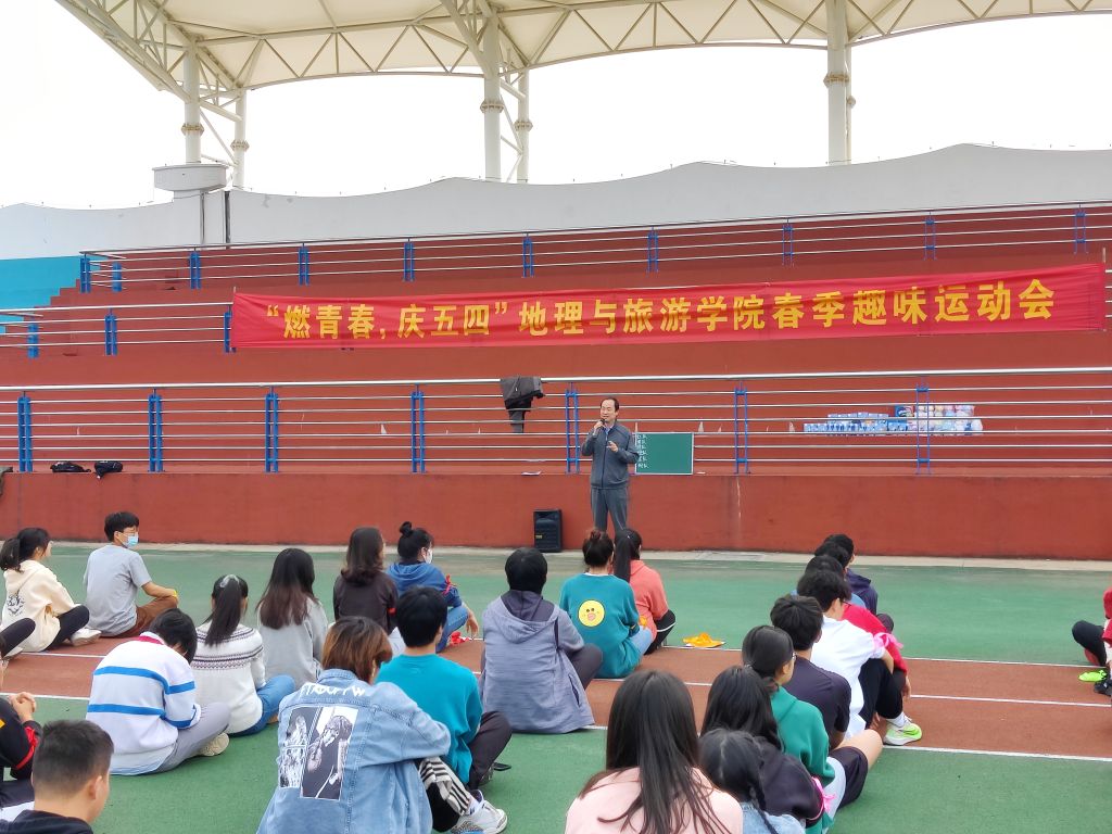 5月1日下午,地旅学院学生会、社团成员在南操场举办“燃青春 庆五四趣味运动会”。运动会开始,学院党委副书记乔静与同学们讲话并致开场词,他首先祝同学们五一劳动节快乐,然后鼓励同学们积极参与、尽情释放运动才能,彰显地旅学子们的青春活力。随后,运动会在动感的音乐节奏和欢乐的手拉手暖场活动中展开,老师和同学们一起汇成同心圆,在主持人的指令中“抱团”组合,欢声笑语不断。随后又陆续分六组竞赛,进行了踩气球、扔绣球、五人六足以及你画我猜(古诗词)趣味活动,运动会项目设置既考验了个体的灵活创意、随机应变能力,也考验了团队的协作互助、默契配合程度。通过积分排序,最终评选出一等奖一组,二等奖一组、三等奖三组,并由乔静给他们颁发了奖品。