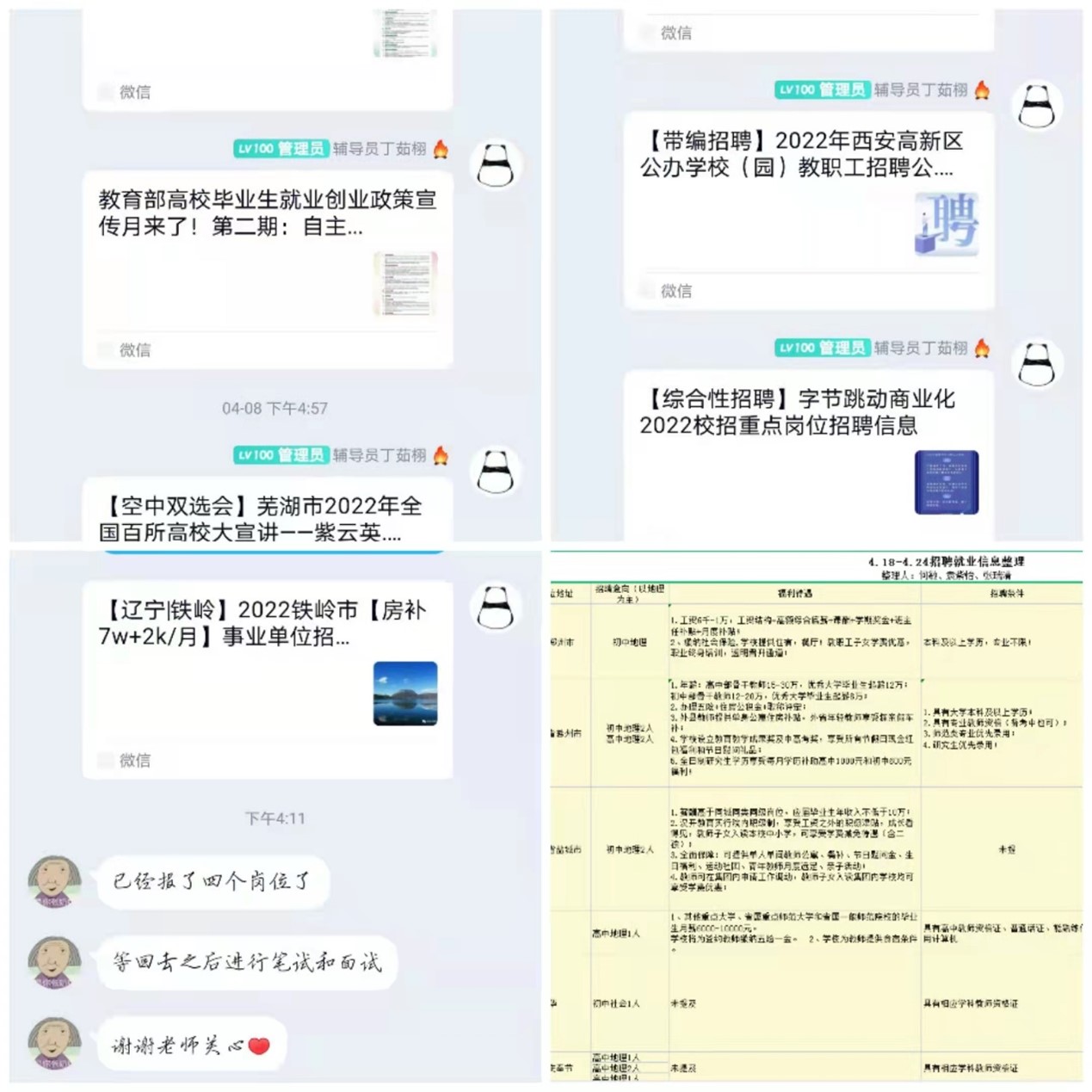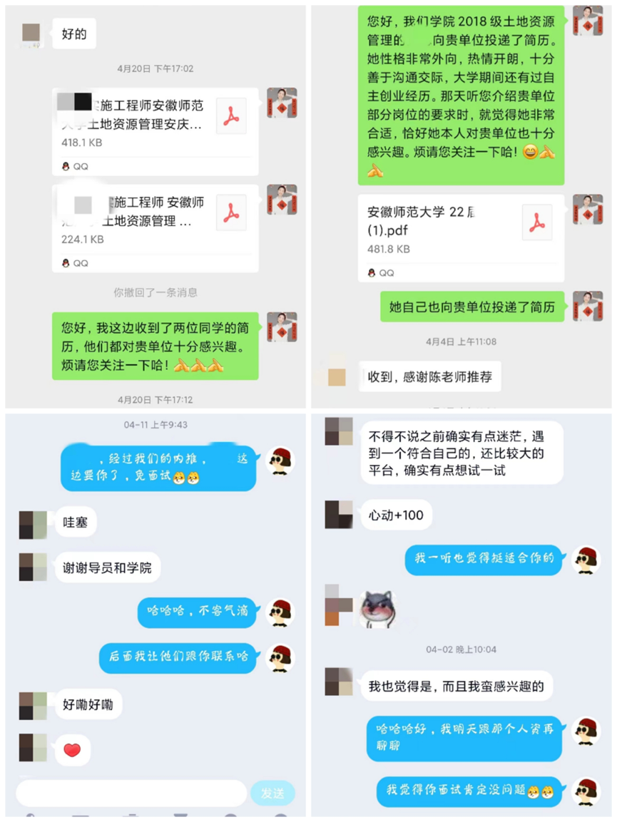 学院不断完善就业困难毕业生帮扶工作体系,建立应届毕业生就业工作台账,实现毕业生就业情况实时动态跟踪。实行“一生一策一导师”精准帮扶,及时关注家庭经济困难学生、残疾学生、受疫情影响地区等重点群体毕业生,通过开展个性化辅导、优先推荐岗位、发放求职补助等方式,努力推动特殊群体毕业生就业。依托主题班会、班级工作群等“两微一端”工作载体,对学生开展就业政策宣讲、国家24365大学生就业服务平台使用指导、求职就业技能培训,实时动态更新推送就业信息,联通学生与就业资讯的桥梁,做到精准推送就业信息,提高学生就业的积极性,提高求职成功的命中率。