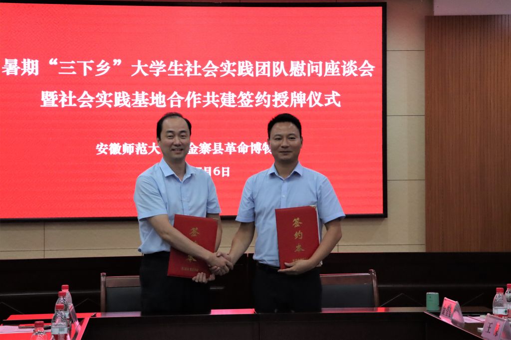 据悉,地旅学院高度重视大学生暑期“三下乡”社会实践活动,自5月启动以来,学院积极动员,精心组织,做好安全教育和组织保障,引导学生围绕社会热点和专业所学,广泛开展丰富多彩的实践活动,积极探索实践育人新机制。此次与金寨县革命博物馆社会实践基地的合作共建,既有助于强化师生党史学习教育,传承红色基因,也有利于汇聚多方资源、发挥基地优势、提升实践育人成效。