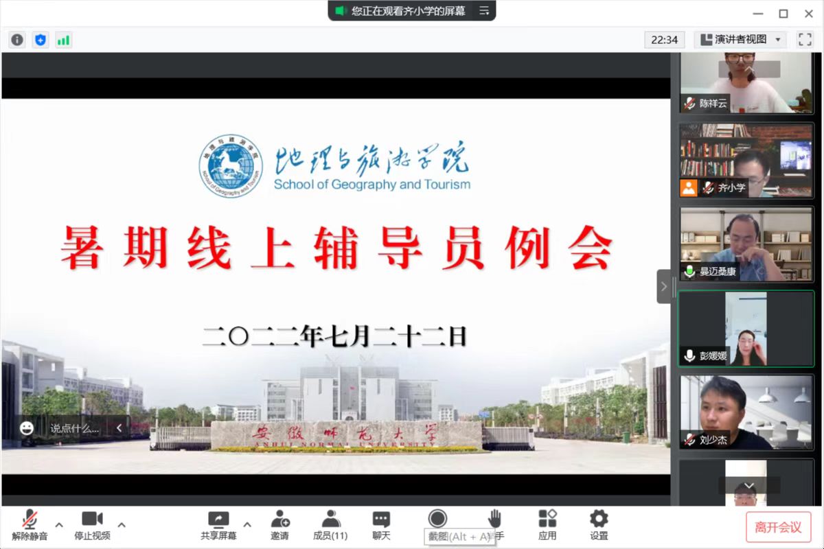 乔静充分肯定了大家的工作态度和工作热情。他表示,进入暑期轮休以后,全体专兼职辅导员坚持离班不离岗、工作不断线,学生教育管理和疫情防控等各项工作稳步推进,特别是各位辅导员深入基层一线,指导学生暑期社会实践,和学生吃在一起、住在一起、干在一起,工作扎实有力、成果丰富,让学生受到了一次深刻的国情社情民情教育,切实提高了认识水平和实践能力。在接下来的工作中,大家要继续把握好工作节律,把学校各项要求贯彻落实下去,掌握清楚学生的思想动态和实际状态,明确知道学生在哪里、在干什么,是否存在安全隐患、有哪些需求,教育引导学生做好防电信诈骗、防溺水、防火防盗、防交通意外等工作,保障好自身安全。与此同时,他还要求全体专兼职辅导员继续做好疫情防控、安全稳定、毕业生就业、征兵动员和暑期学生家访等重点工作,通过主题班会、谈心谈话等方式帮助学生明确努力方向,以实际行动围绕学生、关照学生、服务学生,让每一个学生都能得到成长、顺利成才,自觉履行好为党育人、为国育才的使命。