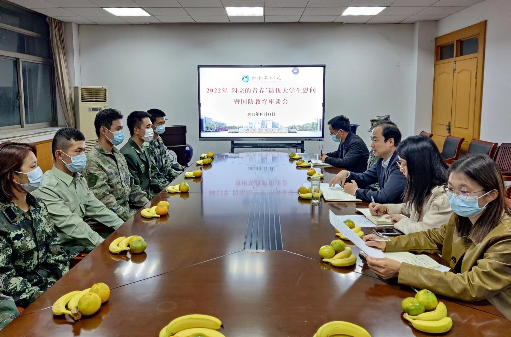 10月11日晚,beat365英国官方网站举办2022年“闪亮的青春”退伍大学生慰问暨国防教育座谈会。学院党委副书记乔静、本科生辅导员代表以及13名退伍复学本科生参加本次会议,会议由乔静主持。