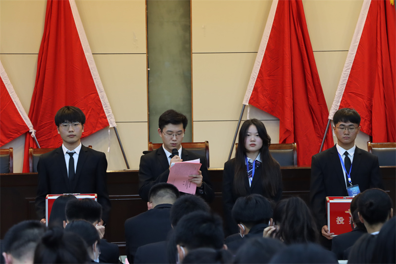 第一次会议分五项流程进行,大会首先在庄严的国歌声中开幕。乔静代表学院党委致辞,他对大会的顺利召开表示热烈祝贺,对近年来院学生会和研究生会工作给予充分肯定,并为院学生会和研究生会工作指明了方向,他要求全体代表把学习宣传贯彻党的二十大精神作为首要政治任务抓紧抓实。同时提出三点要求:一是要坚定理想信念,矢志不渝听党话、跟党走;二是要勤于学习实践,坚定不移长知识、增才干;三是要强化责任担当,勇立潮头担使命、做贡献。研究生学生代表顾洋汇报研究生会的相关工作并提出未来相应规划;学院学生会主席团成员鲍格格进行学院学生会代表工作报告,总结了过去一年学生会工作的主要成绩和基本经验,客观准确地分析了存在的问题。会议最后,乔静为上一届院学生会工作人员代表颁发聘书。