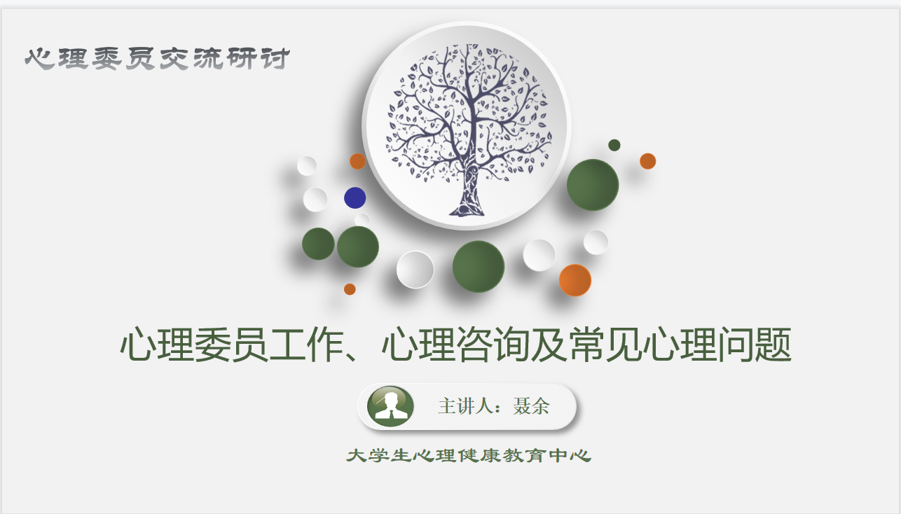 首先,韩红豆向参会同学介绍本次专题培训的目的和背景,并向同学们简要介绍聂余老师个人经历。接着,聂余做题为“心理委员工作、心理咨询及常见心理问题”的专题培训,并心理委员的重要性和必要性、心理委员工作指南、心理咨询介绍以及大学生常见的心理问题等四个方面进行讲述。聂余强调,心理委员、寝室长既要协调好寝室人际关系,同时也要善于发现心理危机,并期望同学们不断养成自我服务、自我管理、及时报告、协同作战的意识和工作能力,进而达到助人自助、完善自己。
