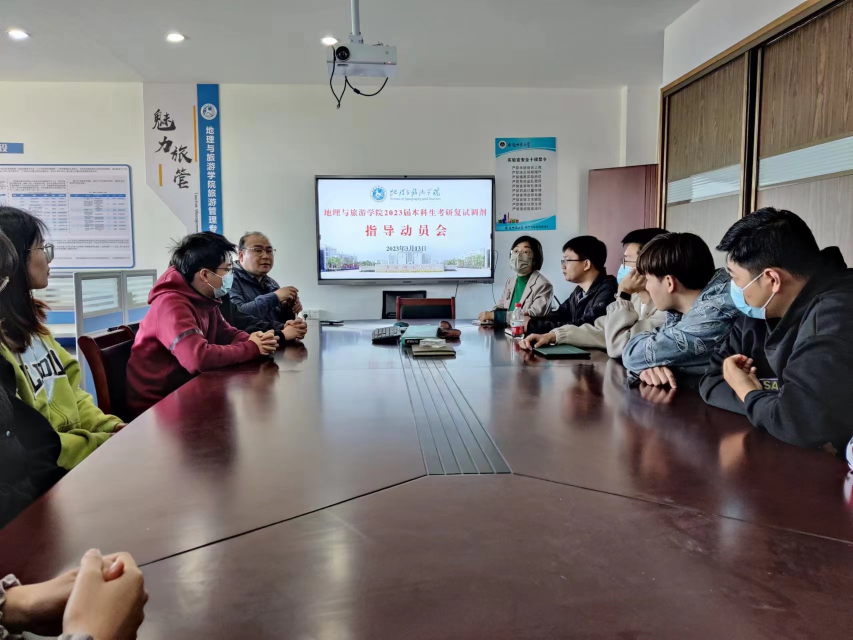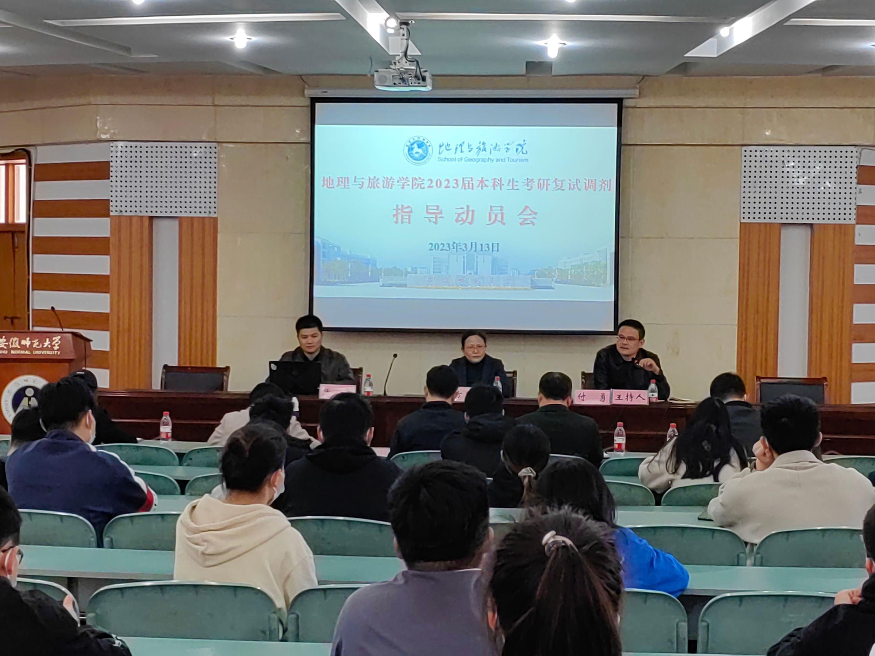 3月13日下午,beat365英国官方网站在财务处二楼报告厅召开2023届毕业生考研复试调剂指导动员会。校研究生院招生办公室张崇,地旅学院院长方凤满,各专业负责人及教师代表、2023届毕业班辅导员及考研达线学生参会,会议由学院党委副书记付勇主持。