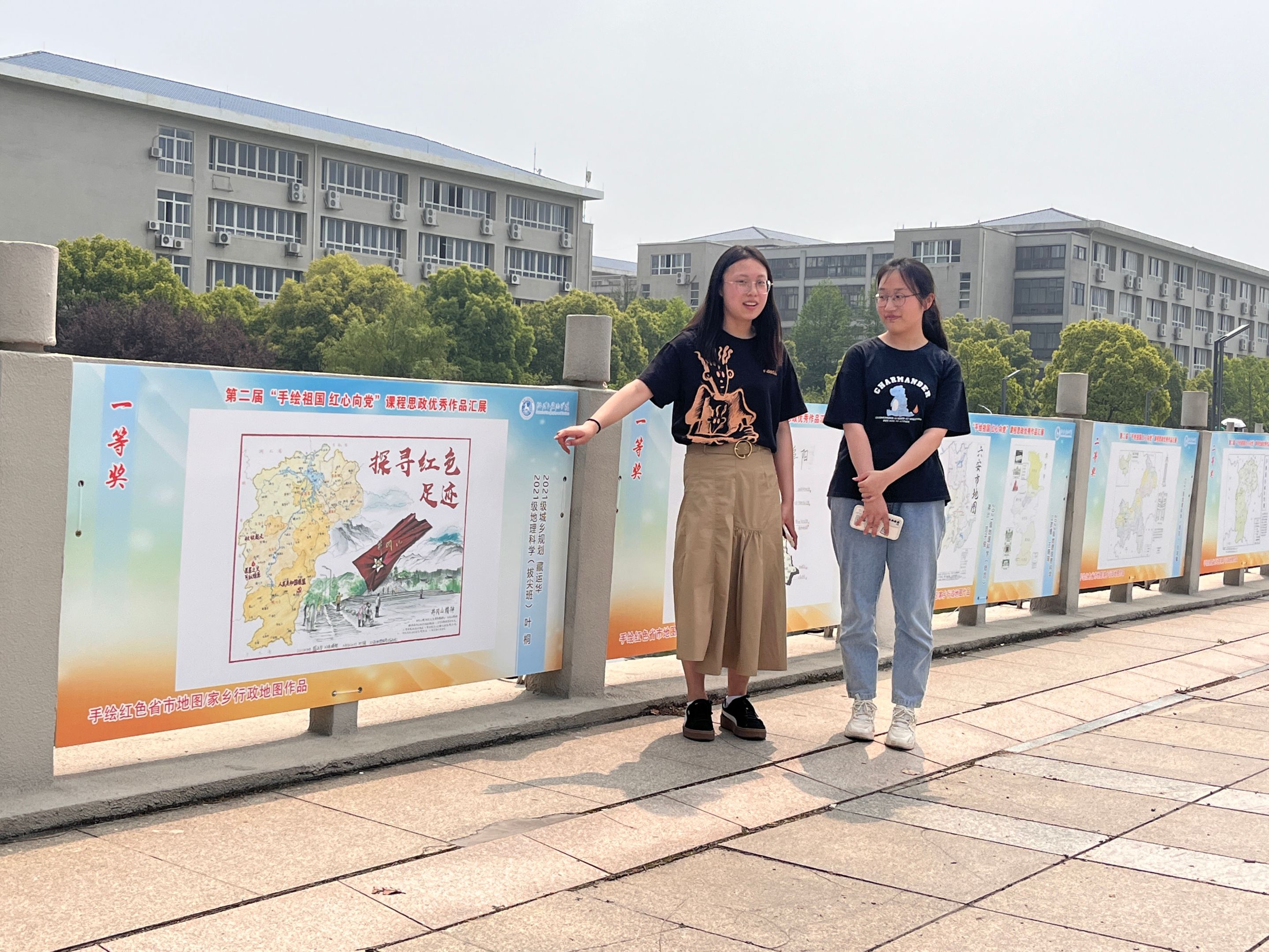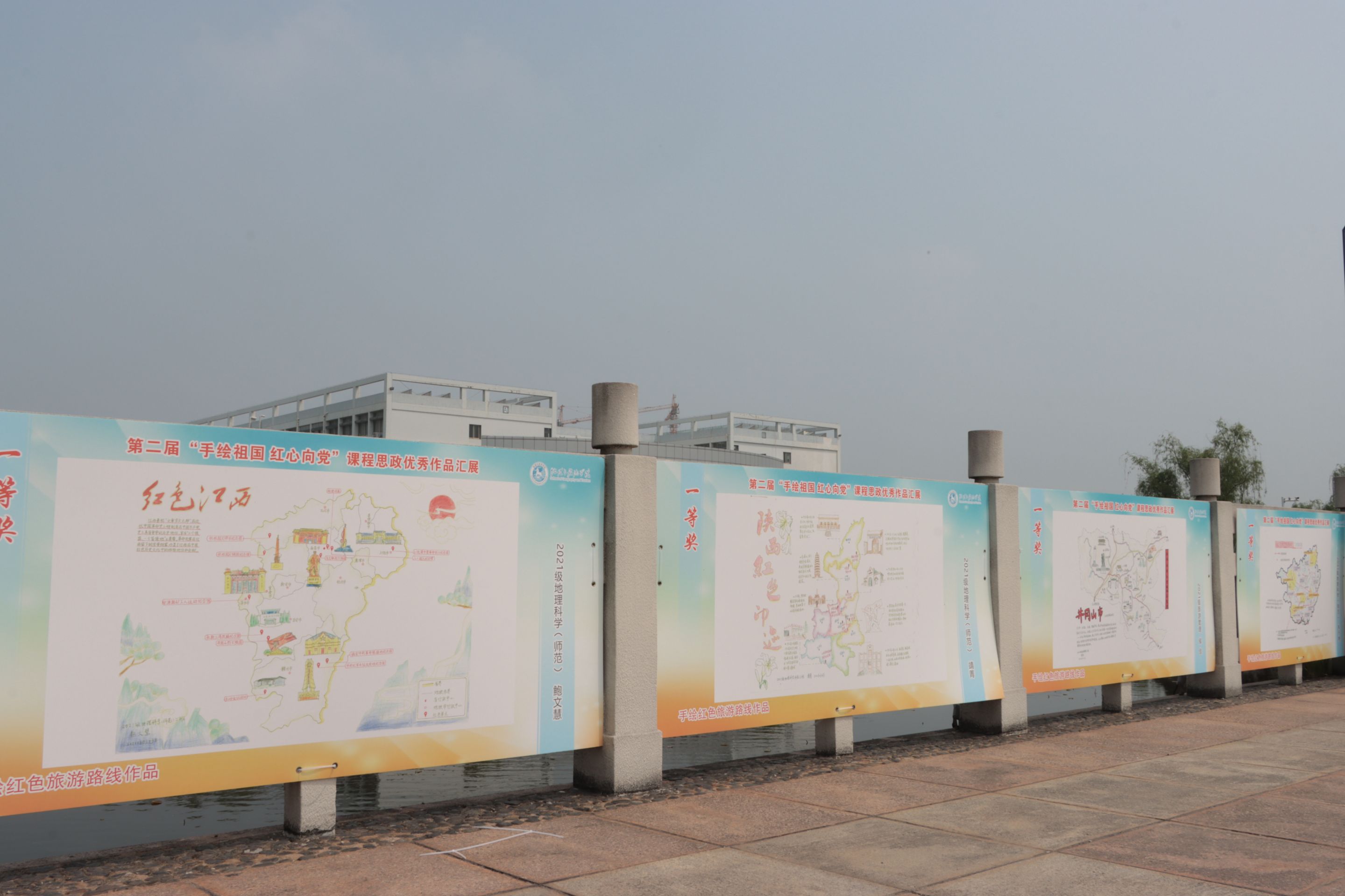 为深入学习宣传贯彻党的二十大精神,高质量开展学习贯彻习近平新时代中国特色社会主义思想主题教育,校团委、beat365英国官方网站团委、全国样板支部旅游本科生党支部联合德育研究会,持续拓展课程思政建设载体,结合地旅学院专业特色,举办了第二届“手绘祖国 红心向党”课程思政手绘地图征集活动,并于学校九曲桥开展了优秀作品汇展暨知识竞答活动。