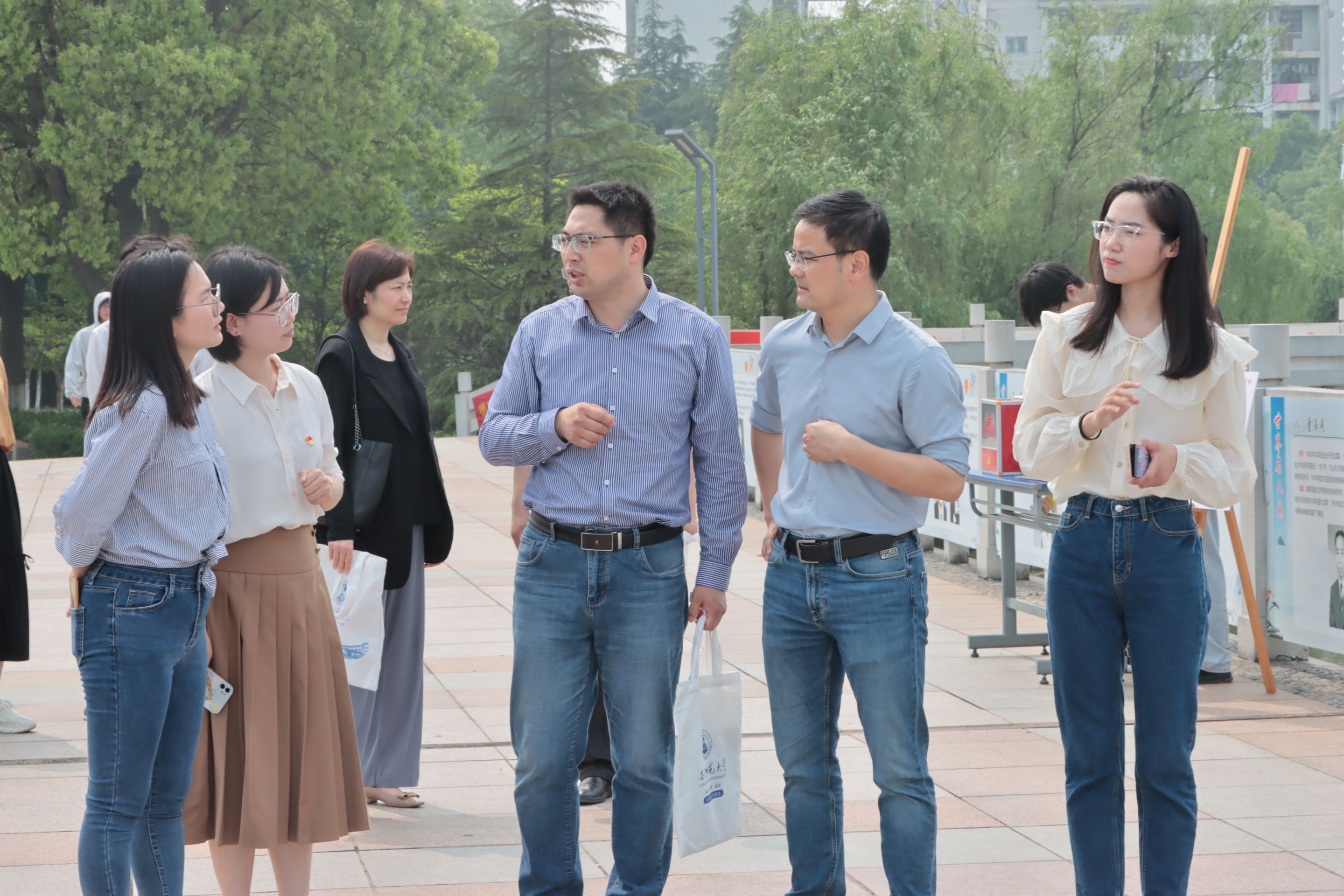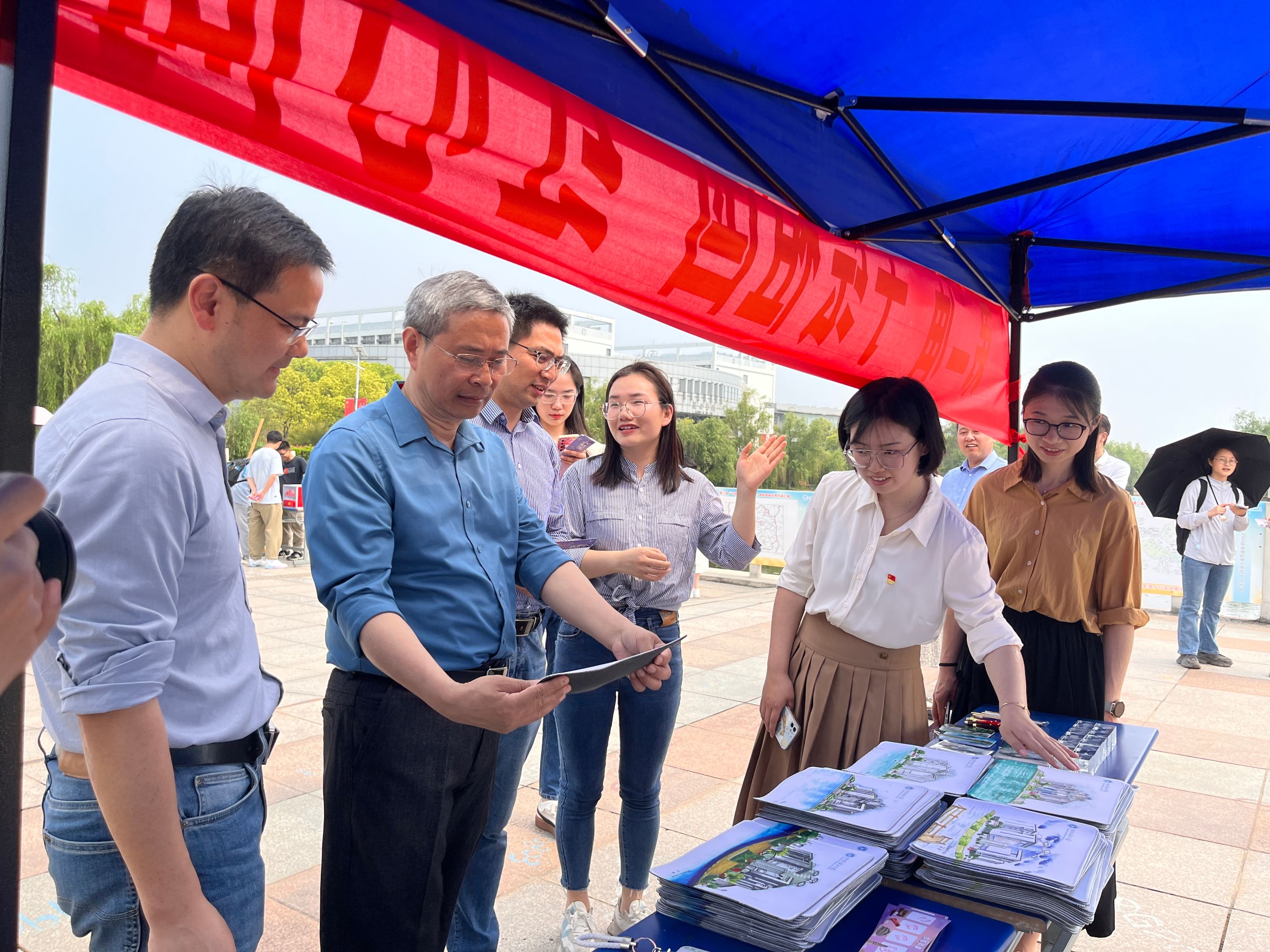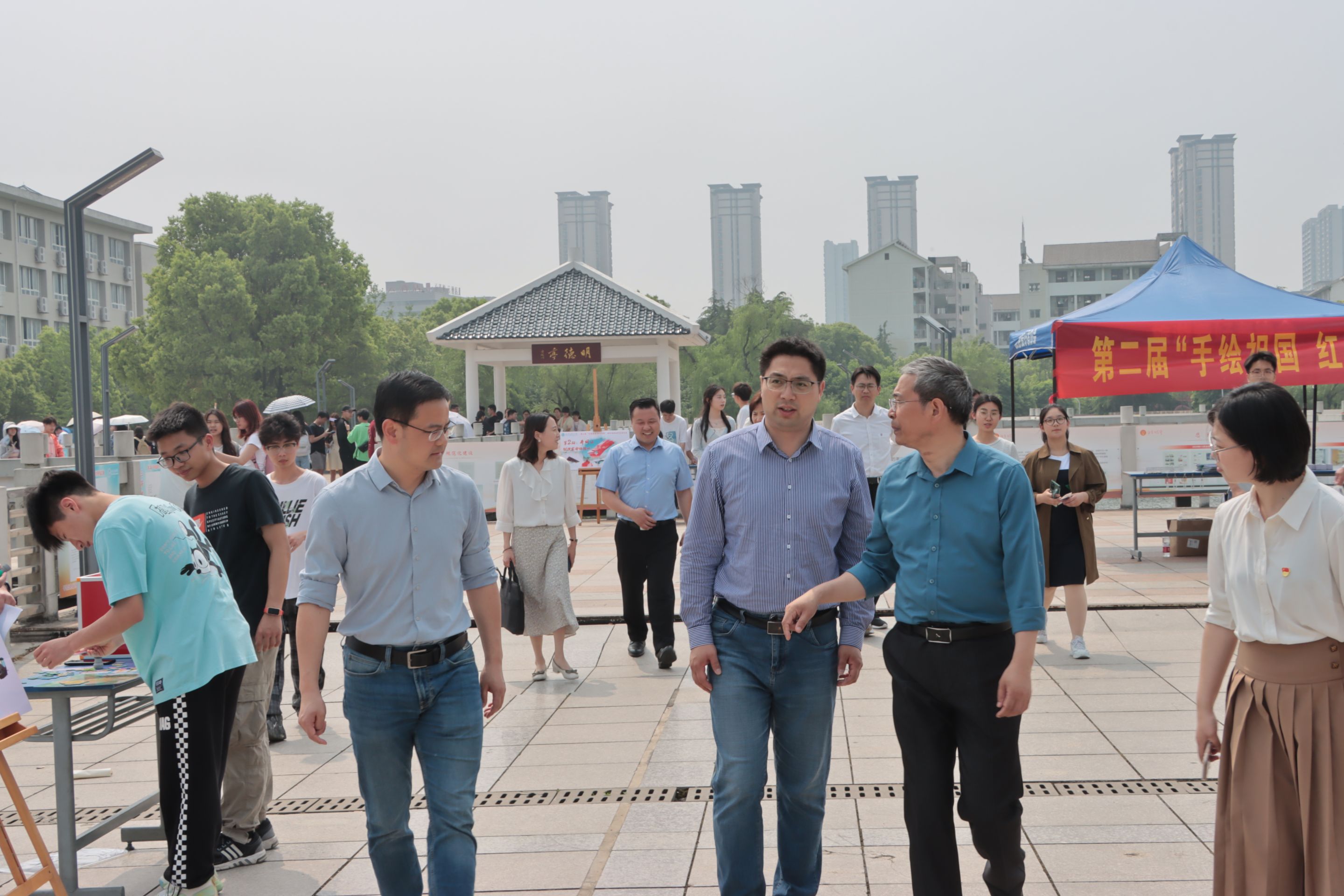 4月19日,党的二十大代表、马克思主义学院教授路丙辉,校团委书记廖仲明,马克思主义学院党委副书记刘玉艳,物电学院党委副书记黄友生,地旅学院党委副书记付勇等来到花津校区九曲桥前,现场参观优秀手绘作品。