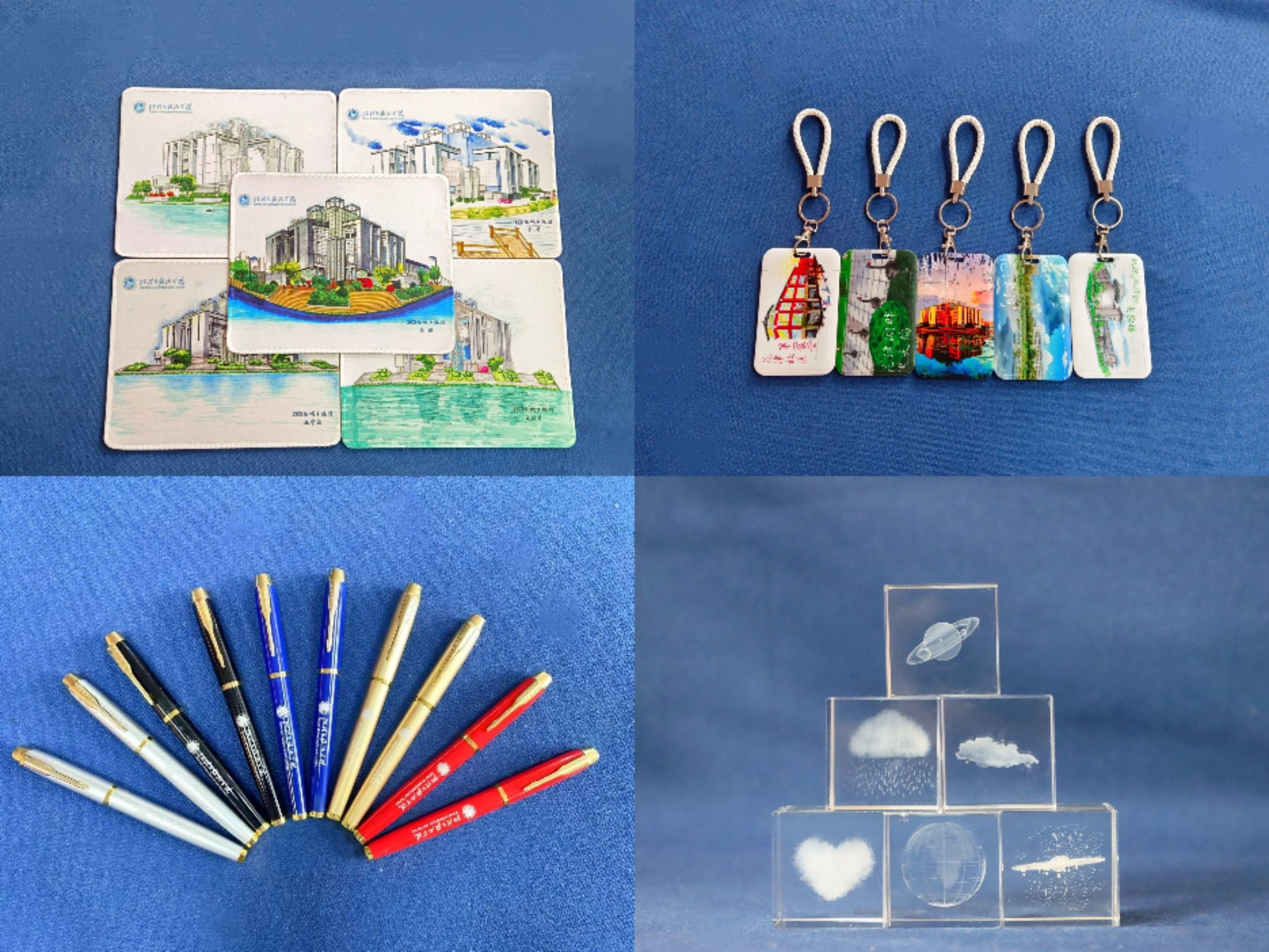 为鼓励同学们参与的积极性,地旅学院在前期精心设计了活动奖品,为50幅获奖作品的作者准备了地理气象主题摆件,邀请2021级城乡规划专业的同学们绘制校园特色景点,并将图案印制成鼠标垫、校园卡套、明信片、签字笔等文创奖品,用于鼓励报送作品的同学们和现场参与知识问答通关的学生。