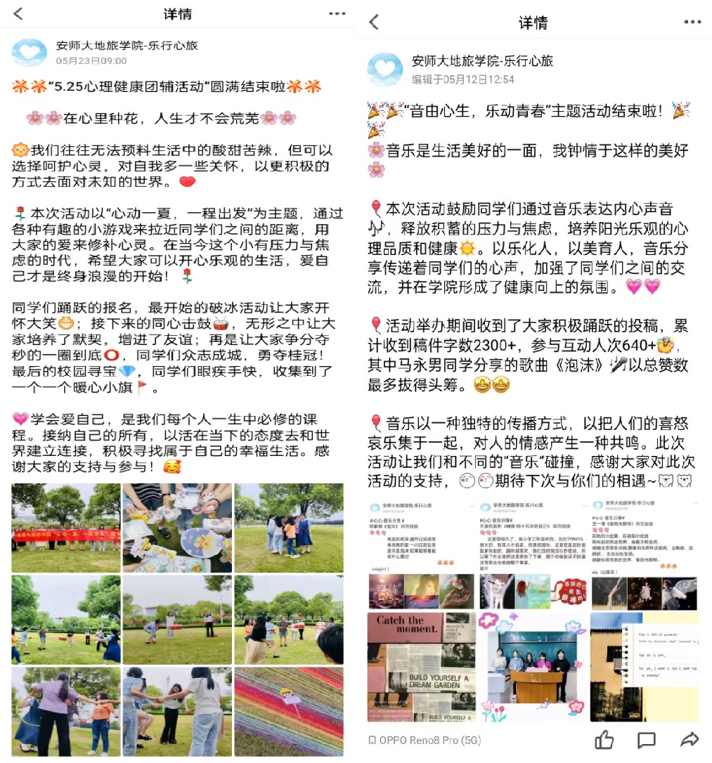 为进一步加强学生心理健康教育工作,提升学生心理健康素养,培育学生积极心理品质,营造良好心理健康教育氛围,地旅学院以“5·25”大学生心理健康教育月为契机,举办了一系列主题活动,扎实推进大学生心理健康教育。