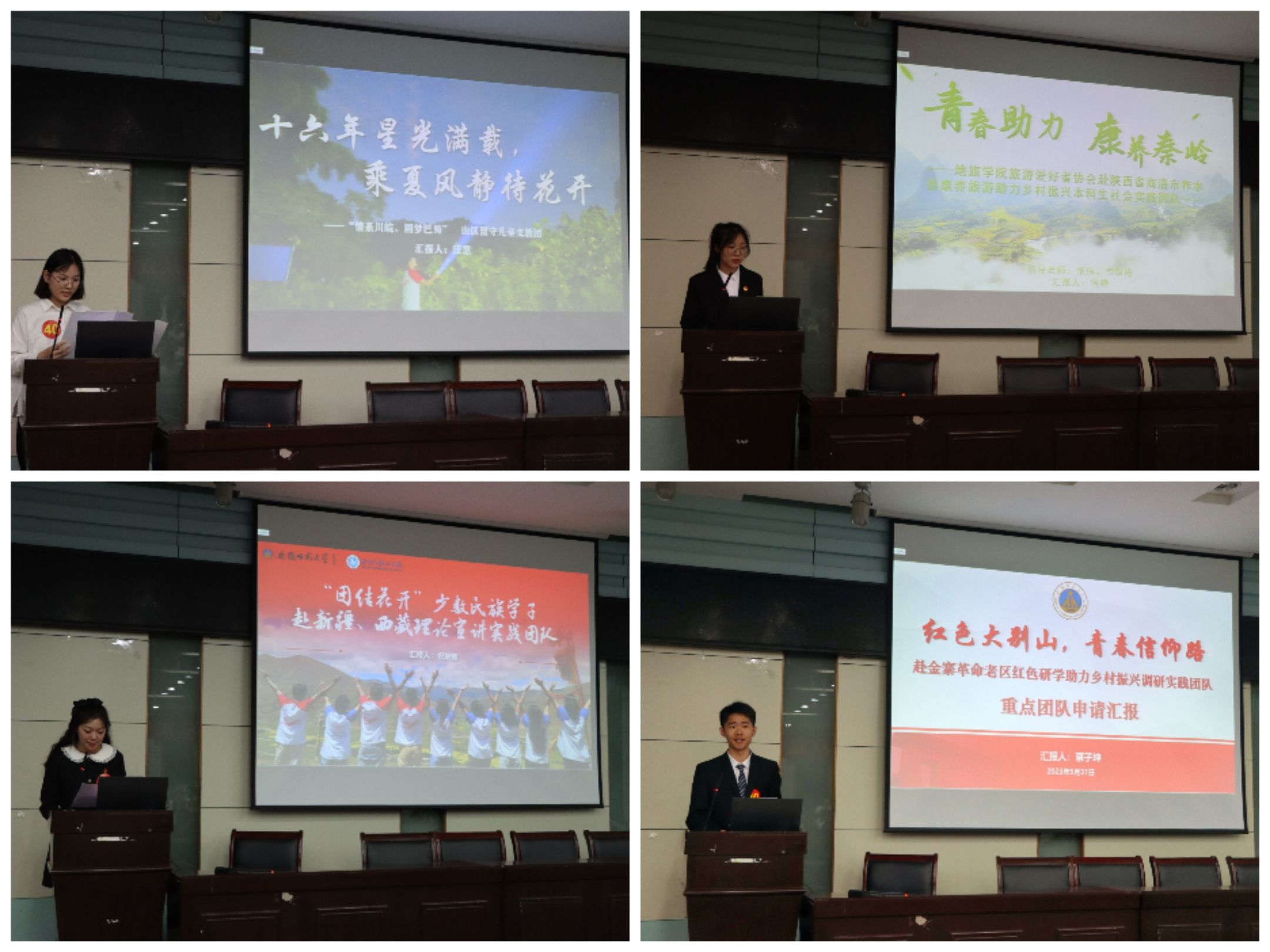 参与此次立项答辩队伍共计41支,实践主题广泛,涵盖专业实践、社会调研、理论宣讲、爱心支教、乡村振兴等方面,各团队通过PPT展示从团队基本概况、实践准备、活动组织、经费预算、预期成果等方面进行汇报。其中,“‘踪’横长江,‘渔’你同行”团队深入长江安徽段9个县区研究长江“十年禁捕”政策实施下退捕渔民的生计状况;“团结花开”团队赴新疆、西藏地区推广普通话为促进民族团结贡献力量;“情系川皖·圆梦巴蜀”团队十六年初心不忘,再次千里赴川关爱山区留守儿童。各团队的踊跃参与和积极展示展现出地旅学子拼搏进取、乐于奉献的精神风貌。