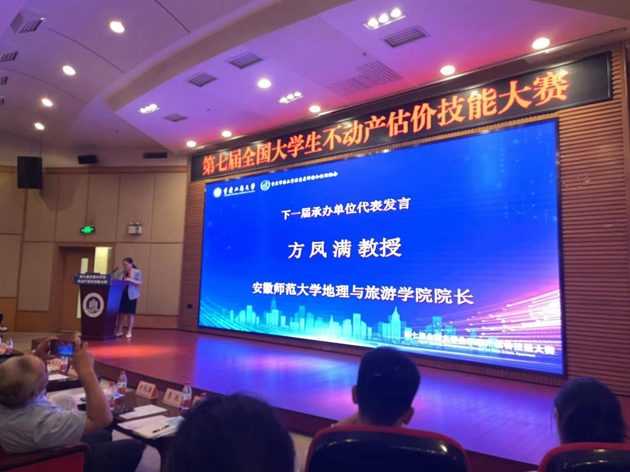 地旅学院院长方凤满作为第八届全国大学生不动产估价技能大赛承办单位代表发言