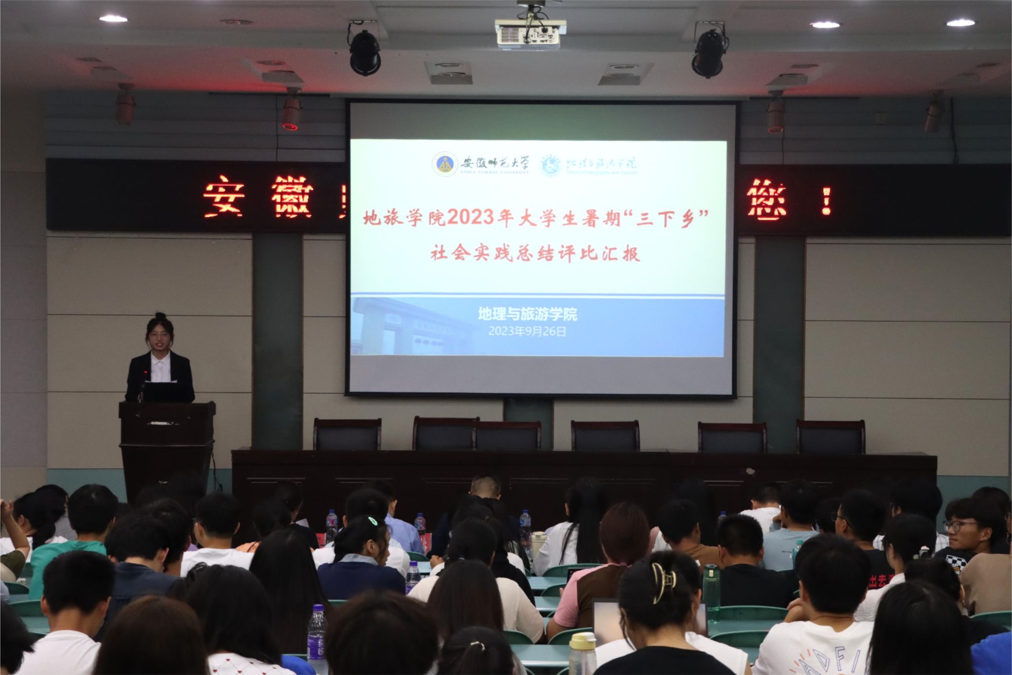 为巩固提升暑期社会实践成果,强化育人效果,引导和帮助广大青年学生在与现实相结合的“大思政课”中受教育、长才干、做贡献、树形象。9月26日晚,beat365英国官方网站在院实验楼101教室举办2023年大学生暑假“三下乡”社会实践专题评比汇报会。学院党委副书记付勇,地理科学专业教师徐仪红、旅游管理专业教师阮陵、土地资源管理专业教师吴九兴、地理信息科学专业教师徐培培、城乡规划专业教师黄秋实,院团委书记韦银艳,院团委副书记吴文涵以及辅导员操晶晶、谢园担任评委,各团队负责人、各年级团支部代表参加会议。会议由徐瑾主持。