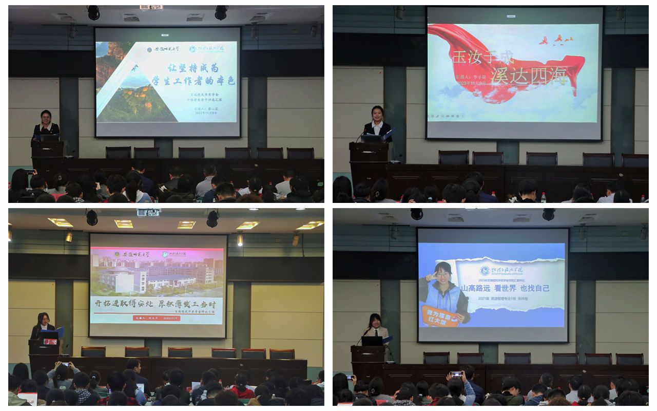 “心有旷野,璞玉自耀”。汇报开始,李钰莹为大家宣读beat365英国官方网站百瑞德风华奖学金暨“十佳学生骨干”评选办法。经学生申请、班级推荐和学院初审,共有24名来自各专业的学生脱颖而出进入汇报评比环节。汇报人依次进行PPT现场汇报展示,声情并茂地讲述自己的学习历程、实践经历、心得体会、个人风采以及对未来的展望,用实干描绘未来蓝图,借奋斗续写时代华章,赢得了全场喝彩。