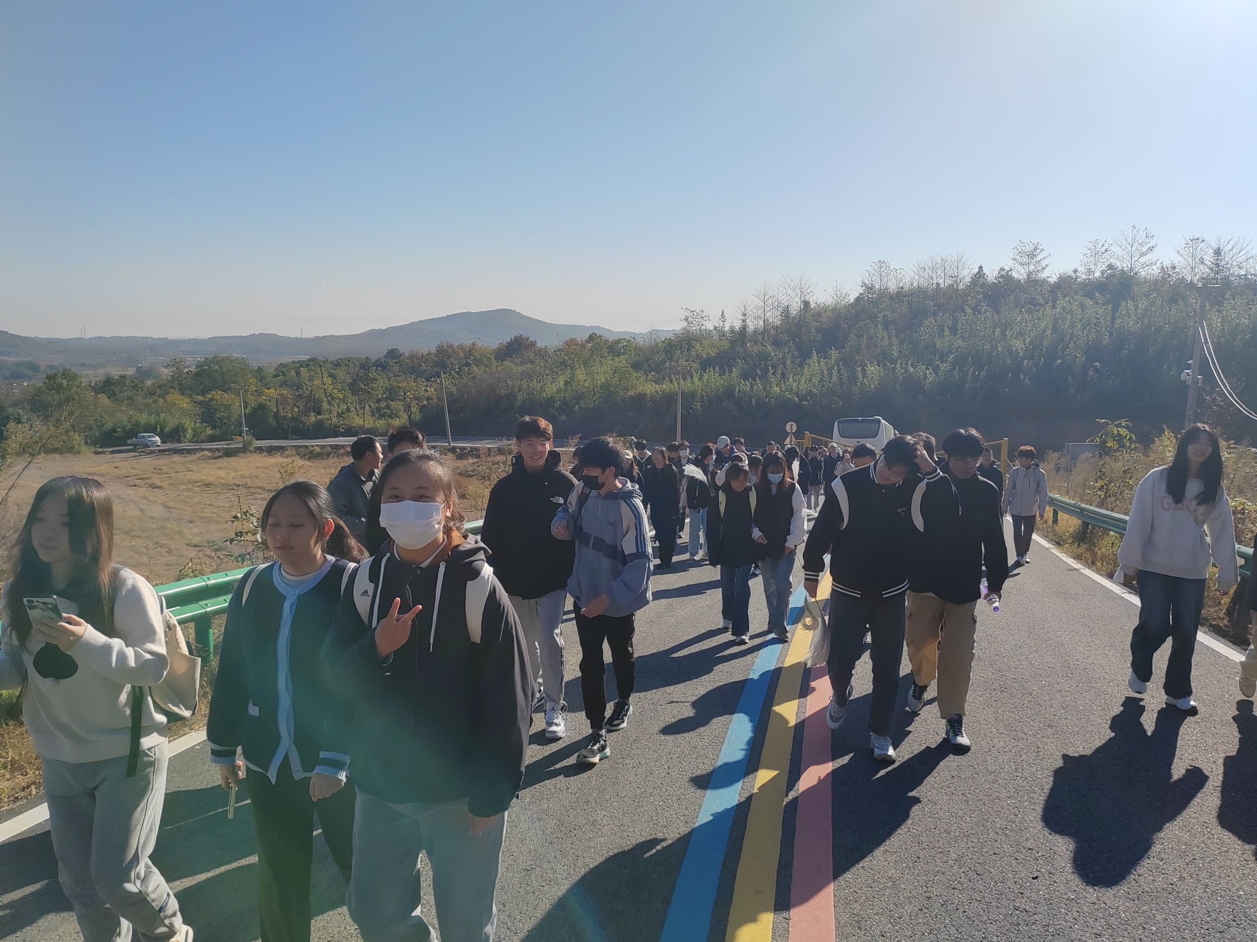 11月19日上午,实习队伍到达响水涧。登山途中,三位老师为同学们讲解了该区域山区岩层、岩性、土壤、植被分布、山麓圩田区水文水系等,同学们了解了该地区土地与地形、岩性、土壤、水文水系、植被等之间的关系。下午,实习队伍到达鸠兹湾。该区域为丘陵区,多为岗地,有特色的土地利用及开发。同学们积极讨论分析了丘陵岗地地区乡村环境整治与农业发展之间的关系。