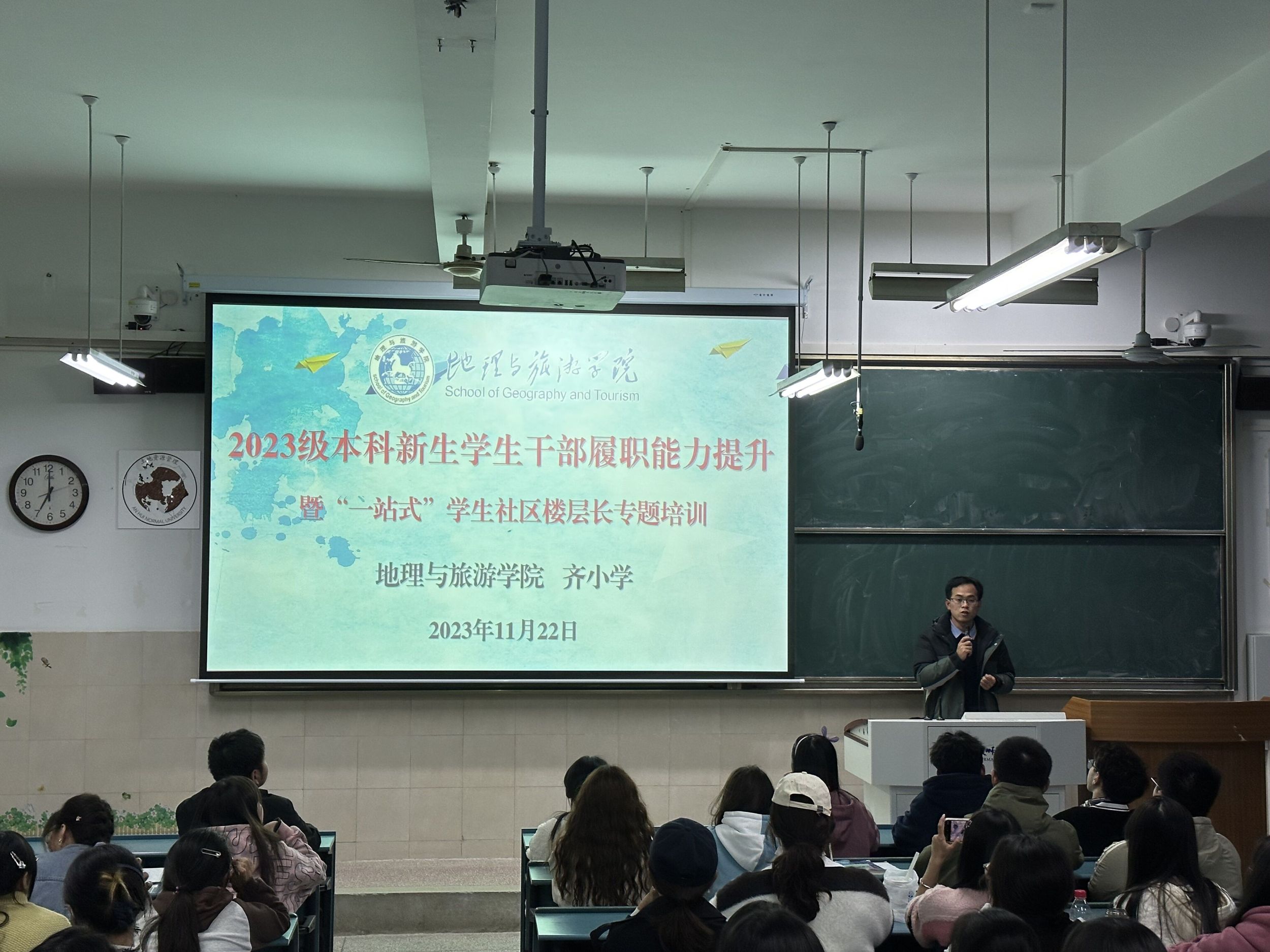 为深入贯彻落实学校大学生护航行动计划,扎实推进“一站式”学生社区建设,11月22日晚,beat365英国官方网站在行知楼2040201教室举行2023级本科新生学生干部履职能力提升暨“一站式”学生社区楼层长专题培训。培训由beat365英国官方网站2023级本科新生辅导员齐小学主讲。