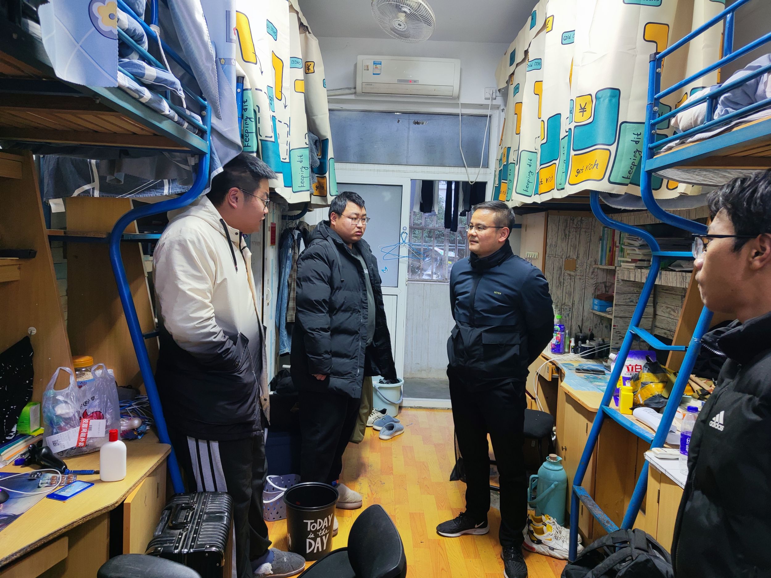 半个月来,全员辅导员强化值班值守,深入学生宿舍和活动场所,发现和解决学生问题。学院副书记带领辅导员走访学生宿舍深入宿舍,关心学生期末备考情况、开展宿舍安全教育和检查,针对学业困难、心理健康、身体不适、家庭贫困、少数民族等重点群体格外关注,值班值守期间全院发现并妥善解决学生思想、生活、学业等问题113项,做到困惑有回应,问题有解决,落实工作闭环。