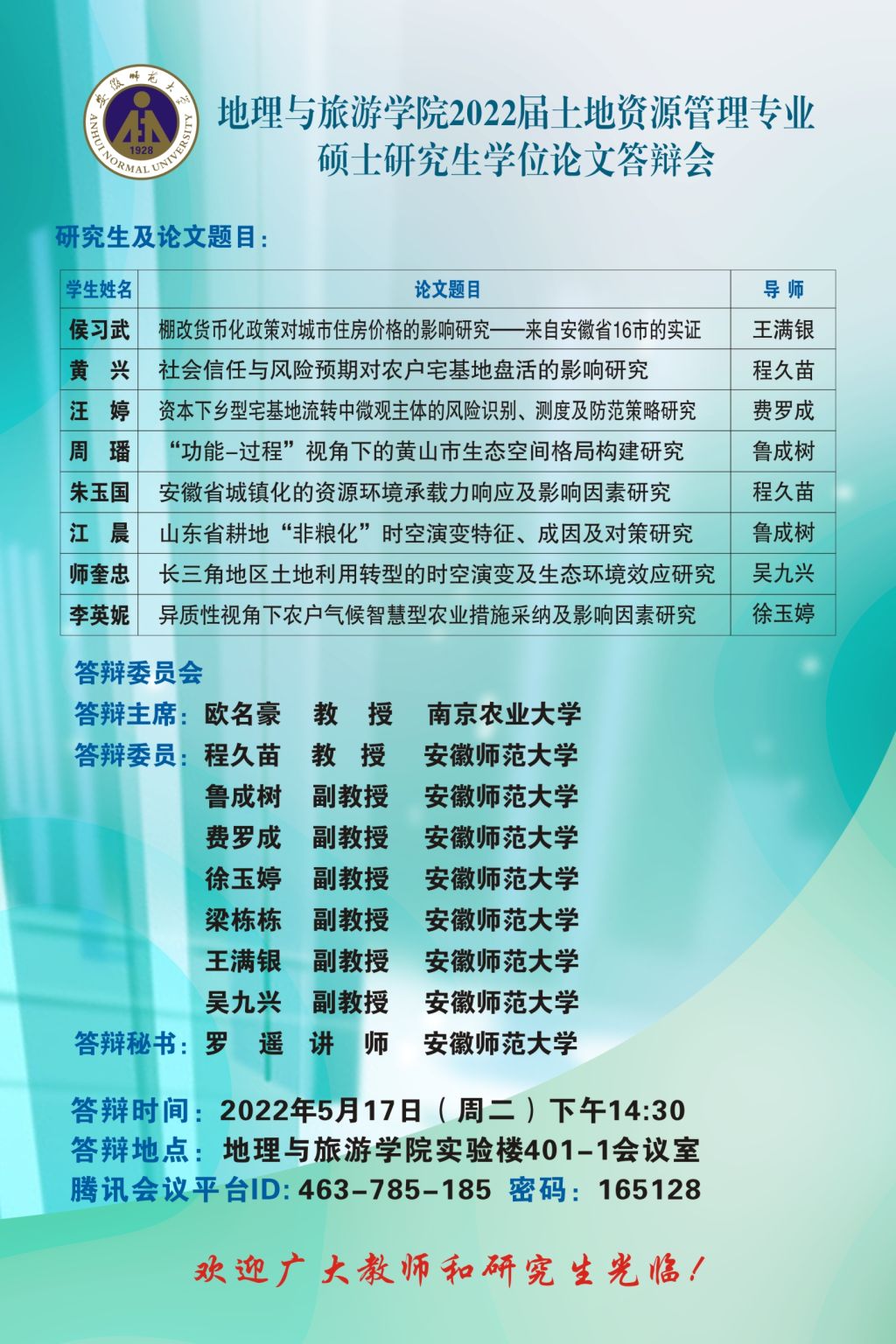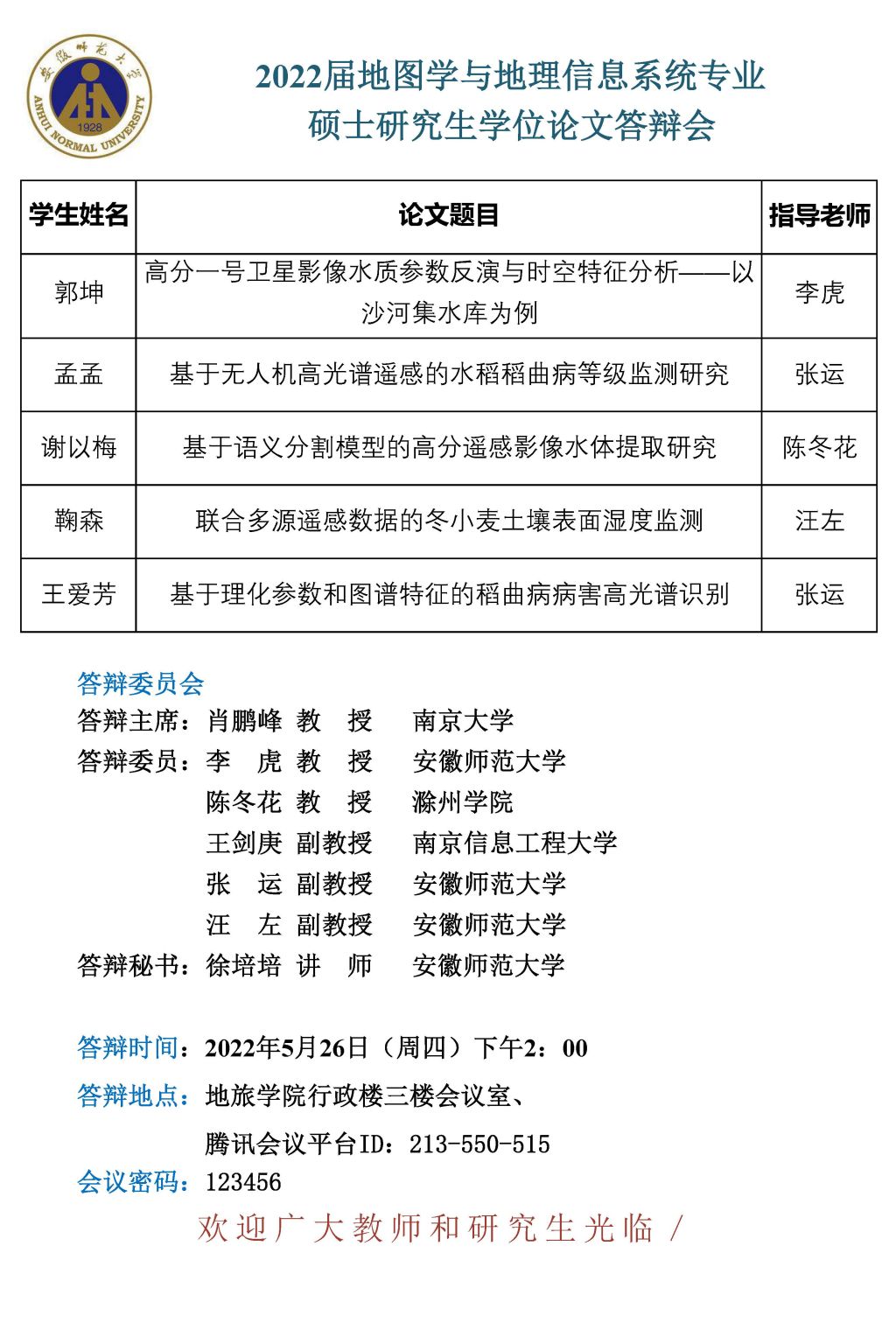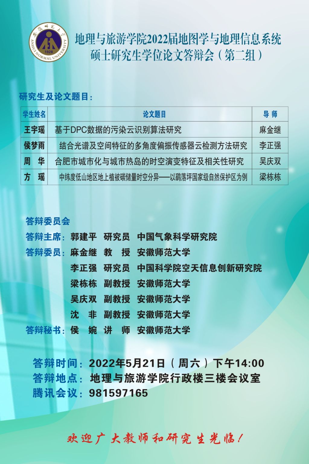 beat365英国官方网站2022届博士、硕士研究生学位论文答辩信息公告 (第一批)