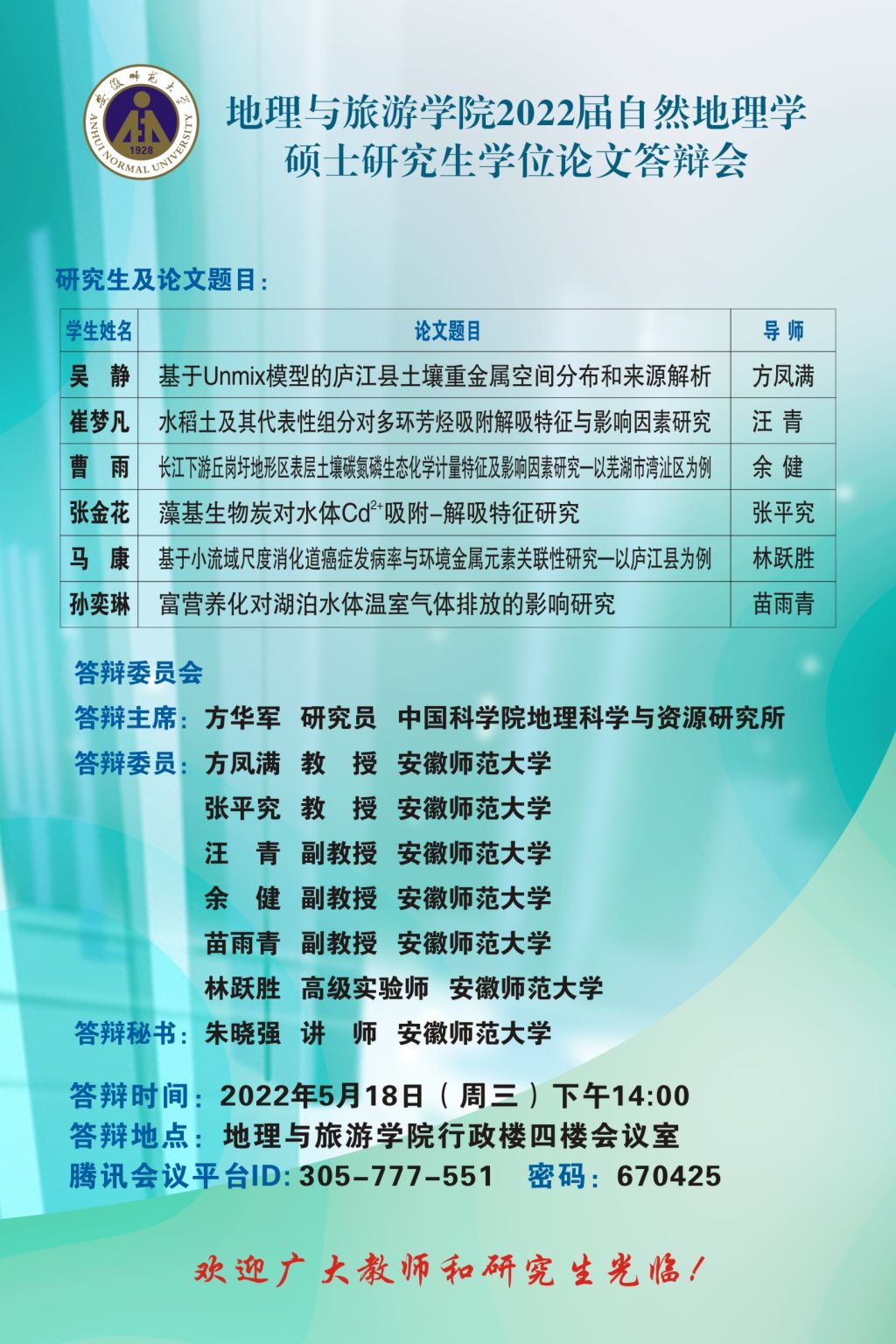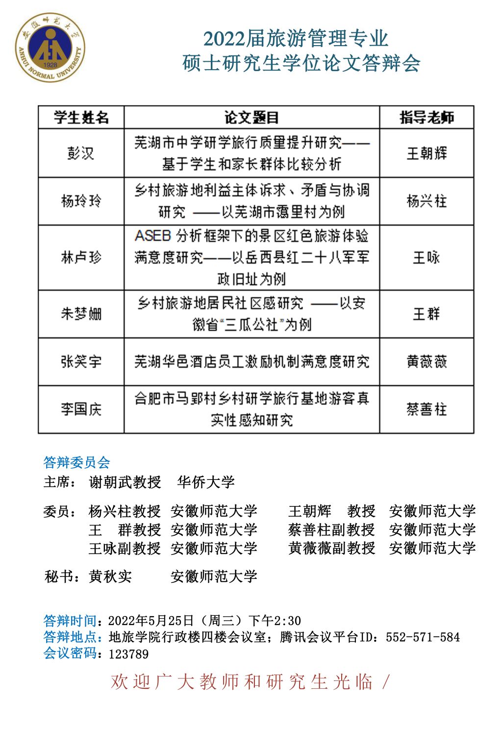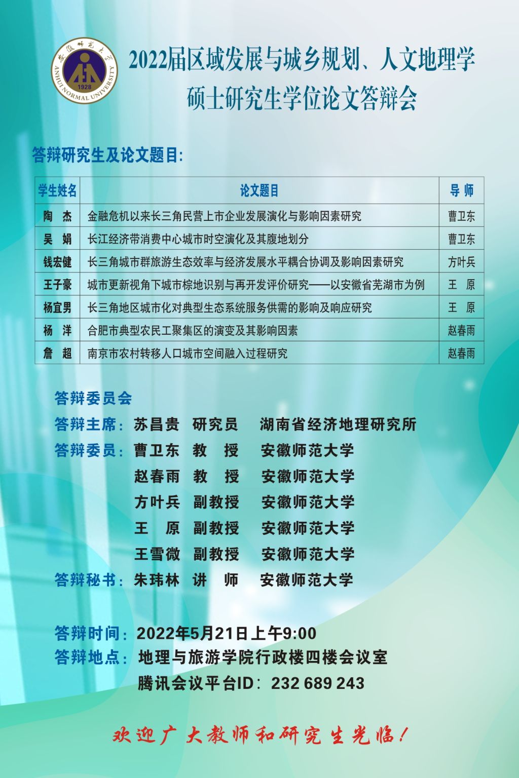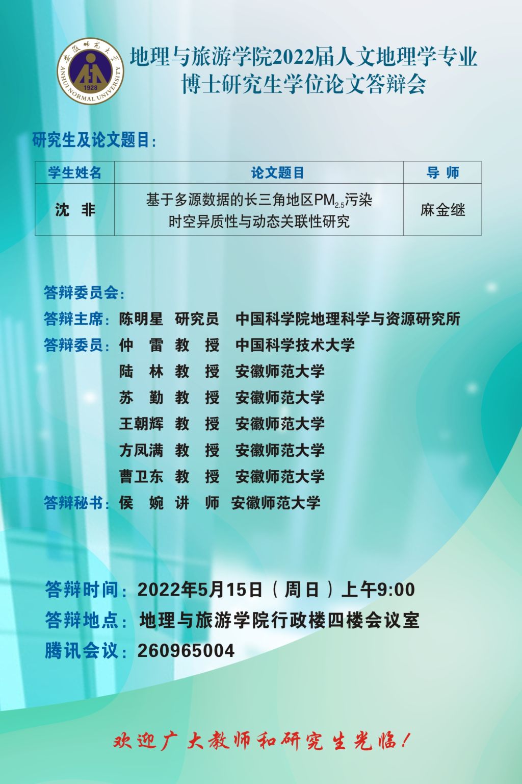 beat365英国官方网站2022届博士、硕士研究生学位论文答辩信息公告 (第一批)